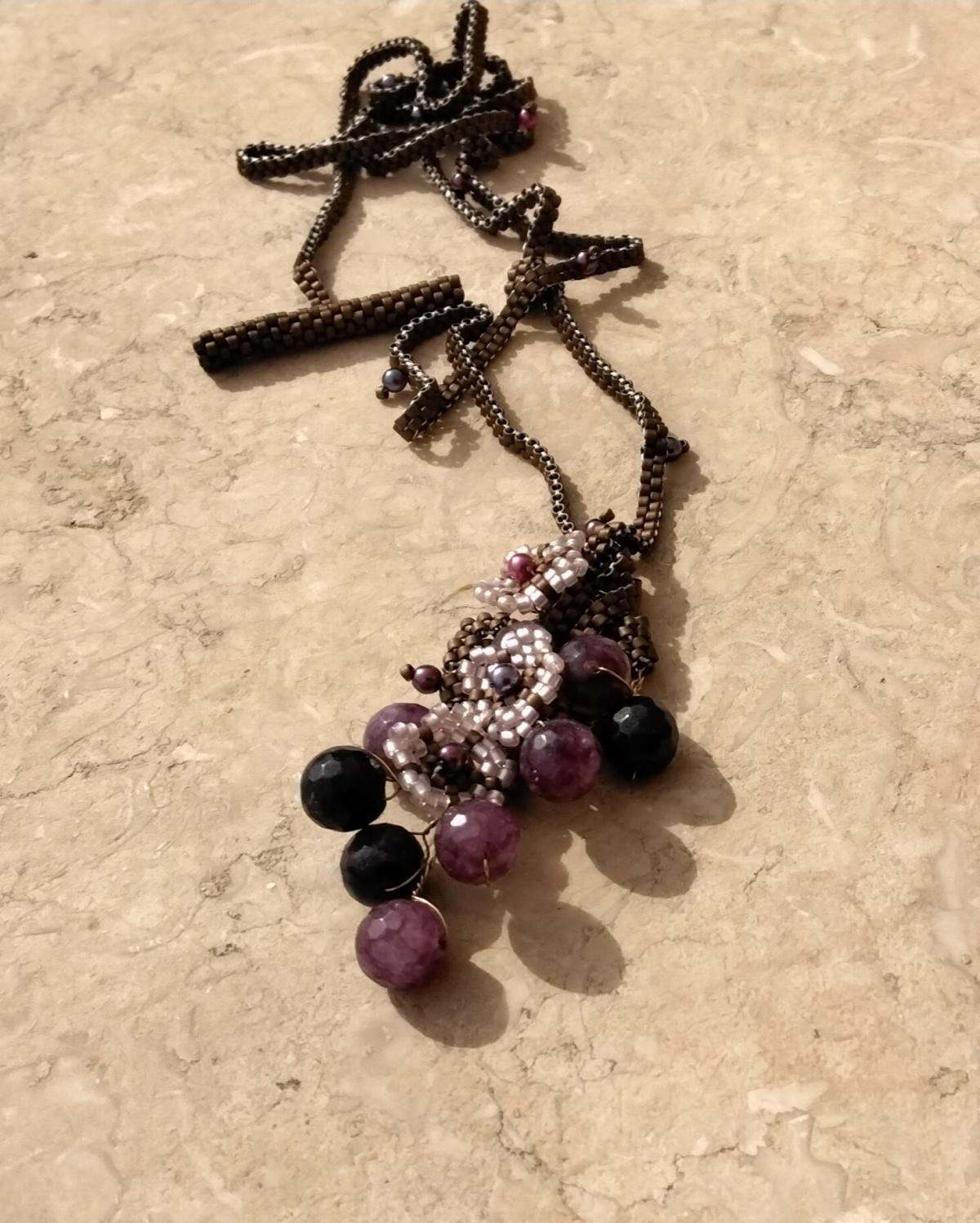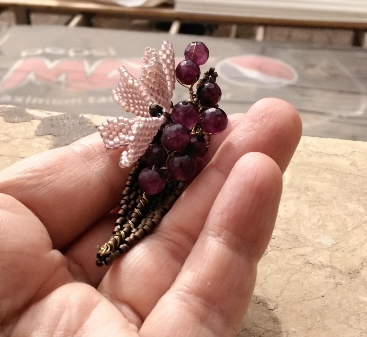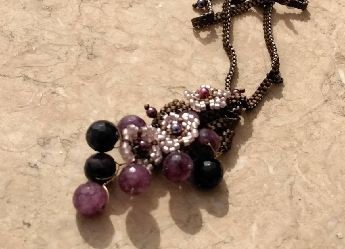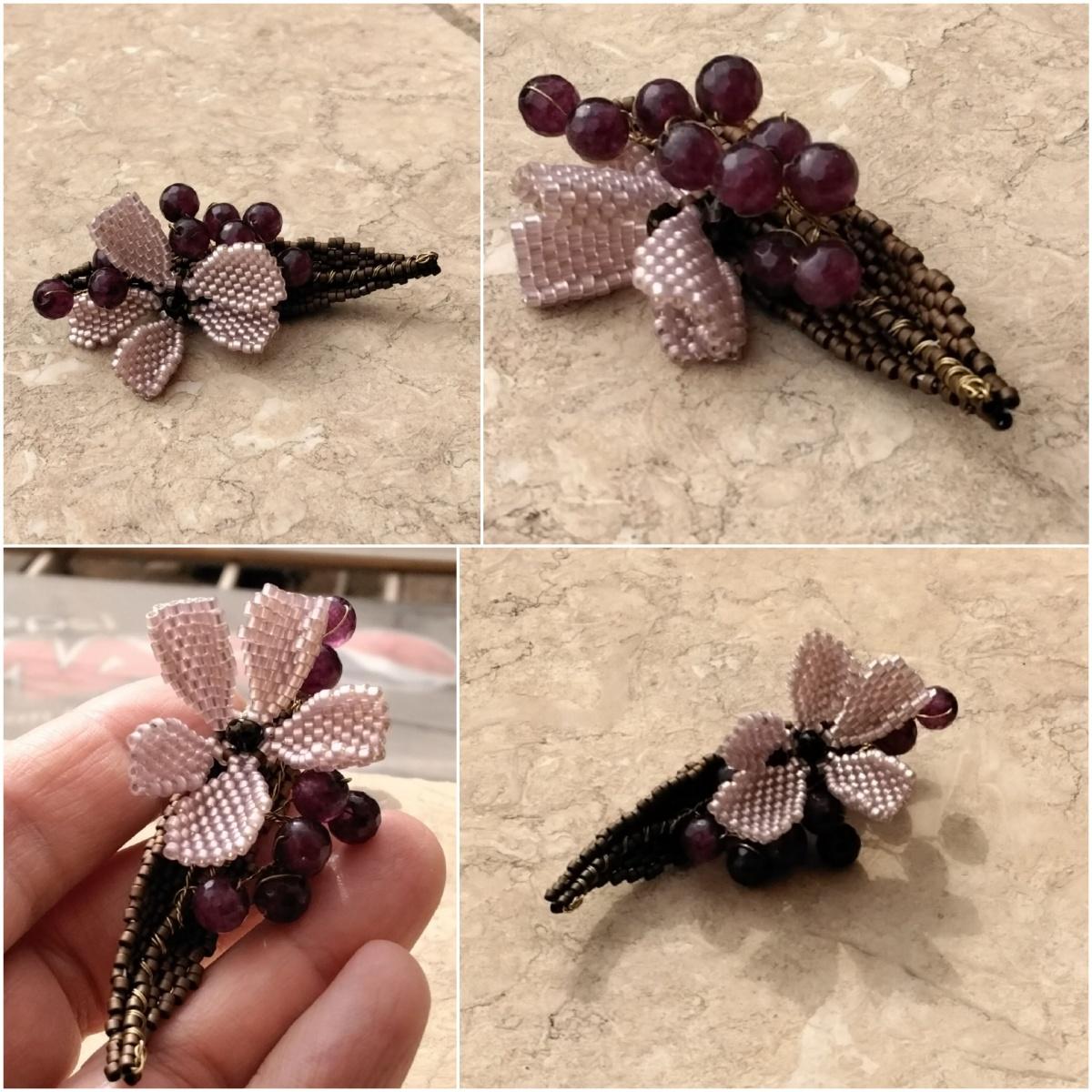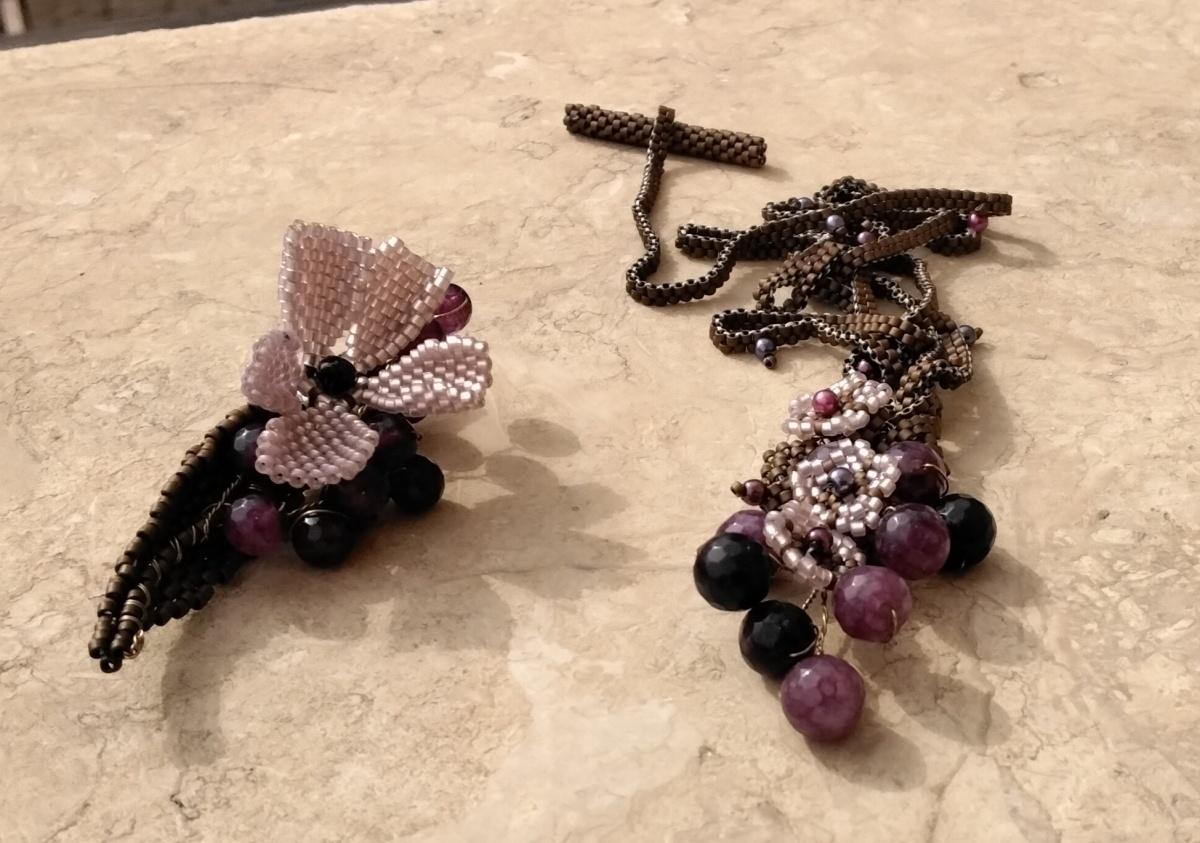 Снова использовала проволоку для веточек с бусинами. Понравилось сочетание мозаичного плетения и проволоки.