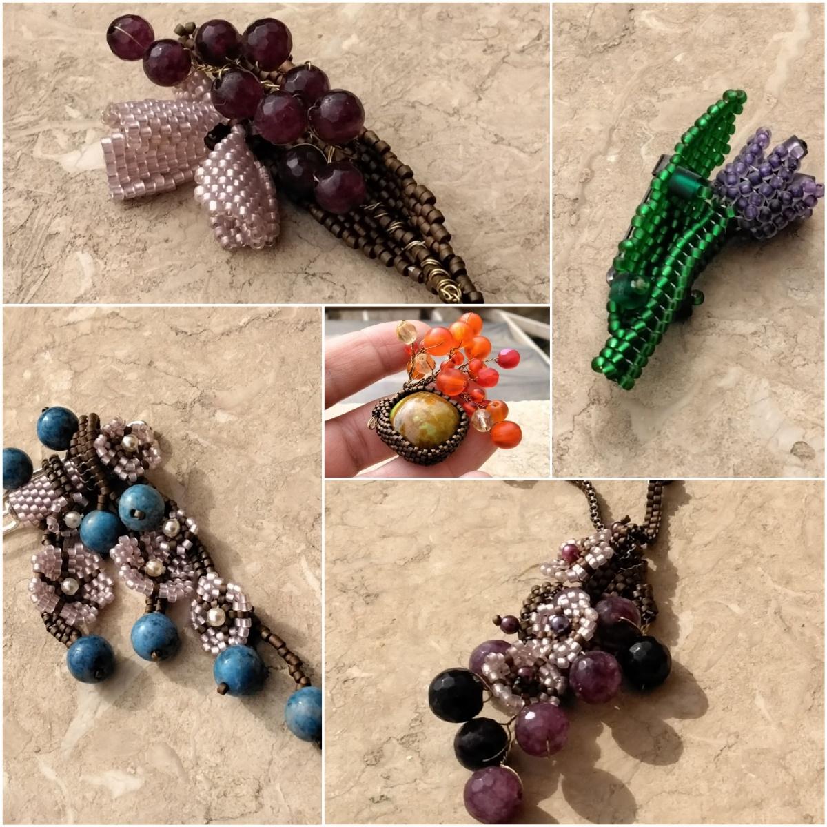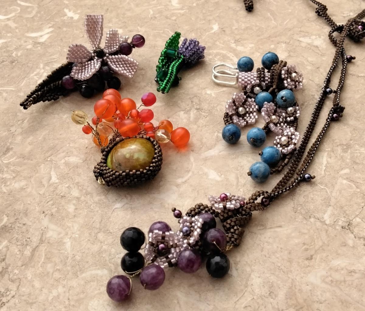 Альбом пользователя Portulaka: Кулон и брошь с бусинами жадеита и Ко