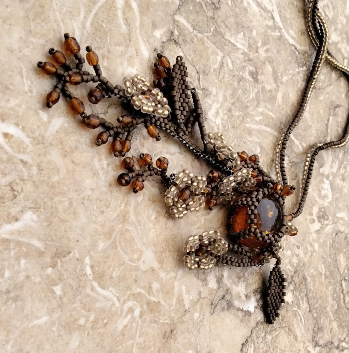 Замечательное сочетание — шоколадные листики с медовым кабошоном! Очень нравится!
