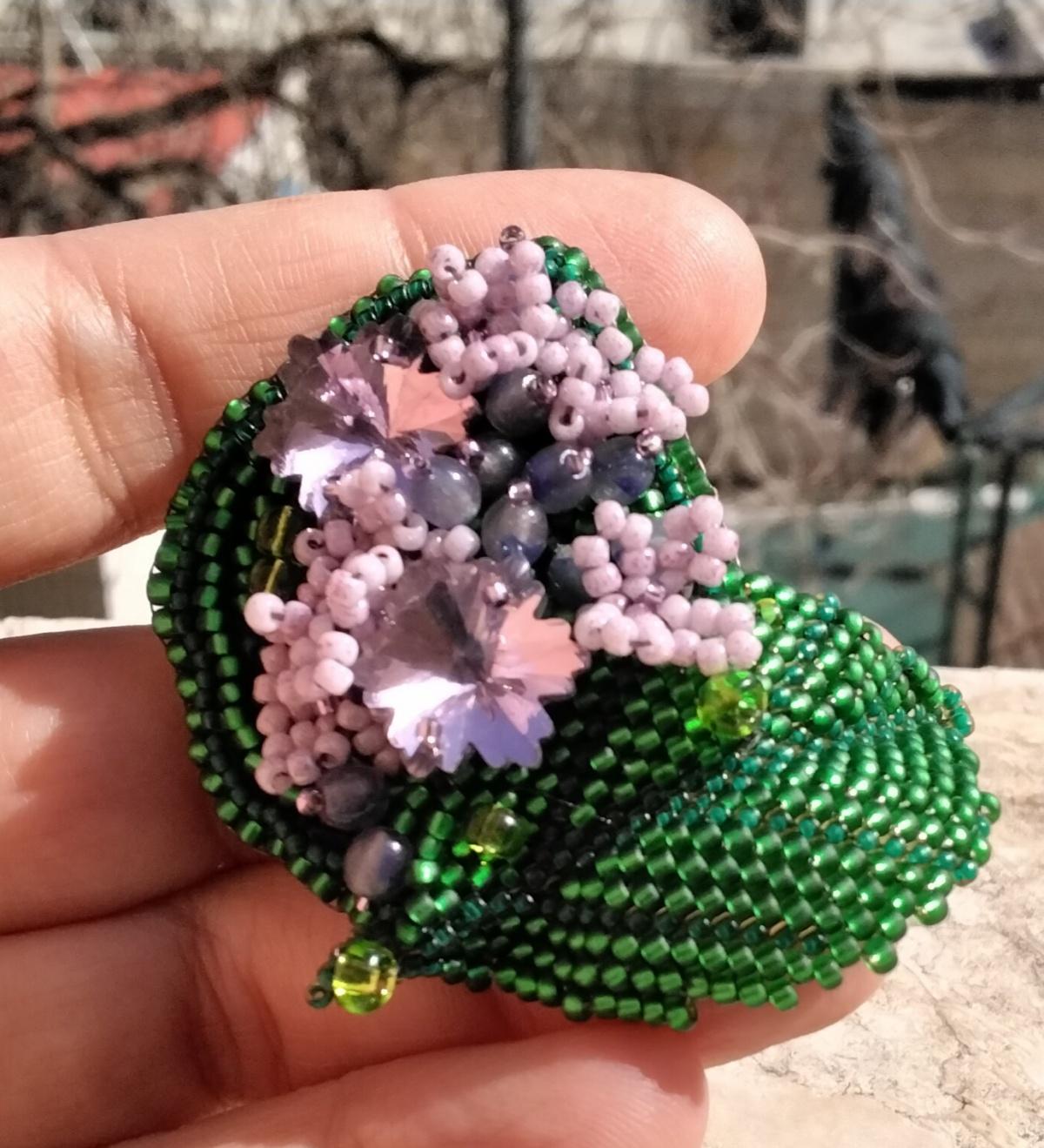 Чудесная брошечка! А у меня тоже была такая сирень. Только в палисаднике она была высажена квадратом вперемешку с жасмином. И вот в середине этого квадрата сначала в куклы играли с подружками, книжки читали, к экзаменам готовились…