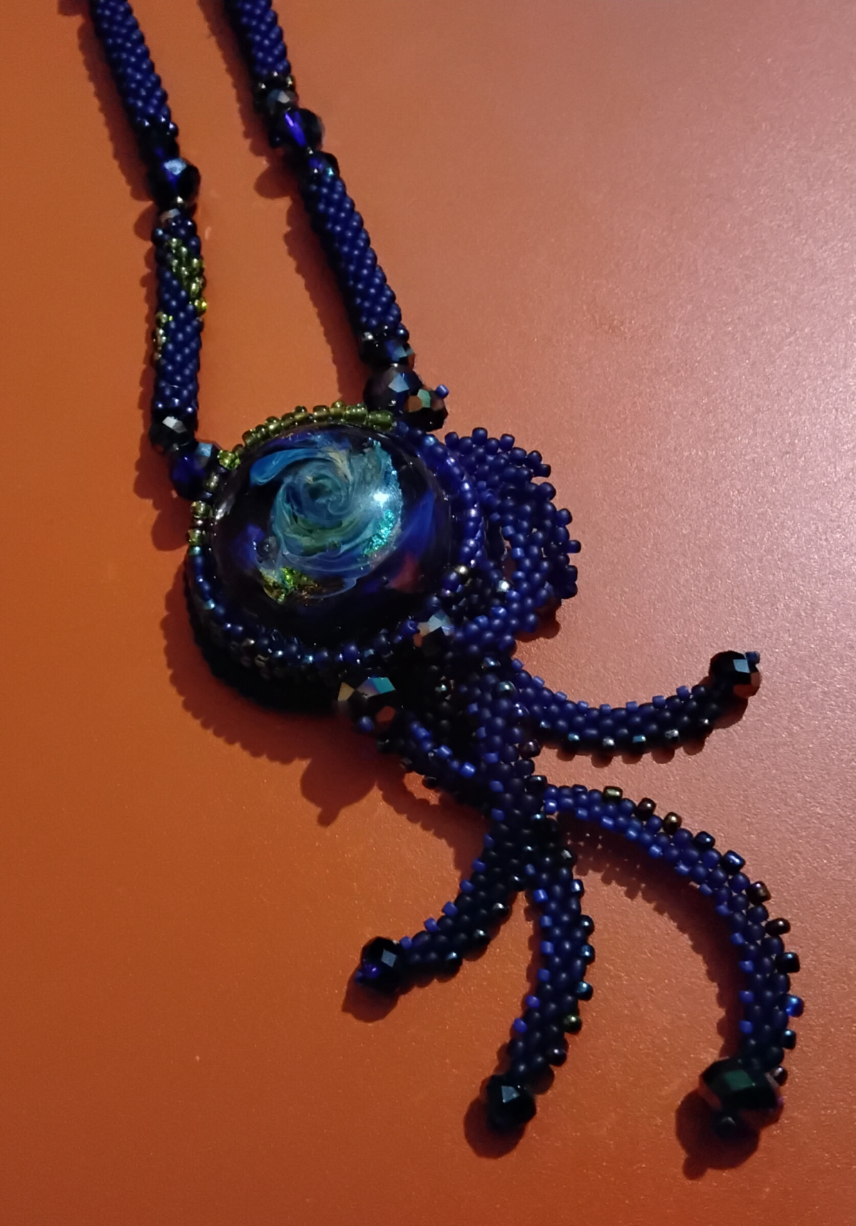 Кулон с стеклянным кабошоном ручной работы Натальи Житомирской. Ну, и моя скромная добавка…
