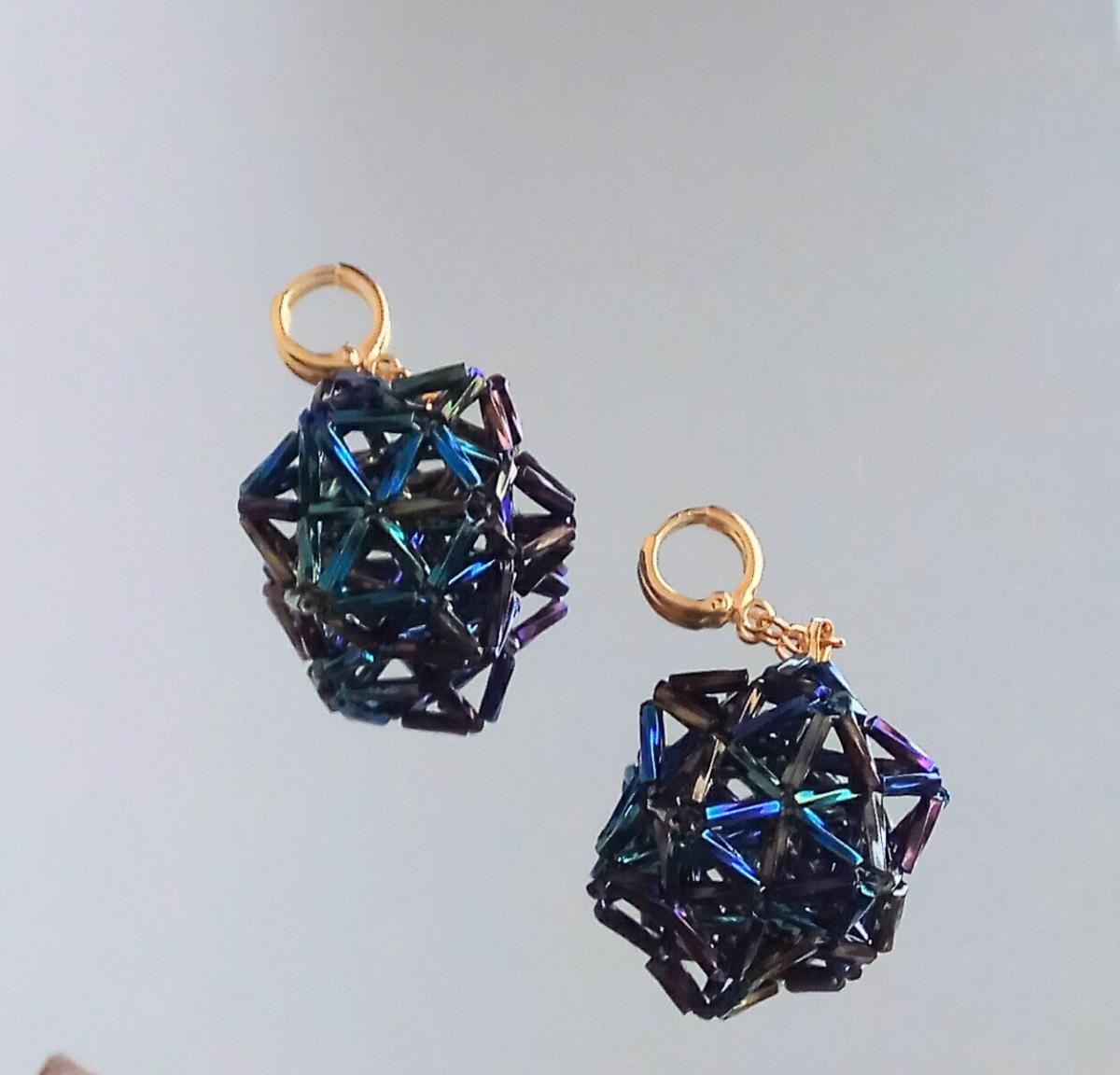 Так можно здорово использовать стеклярус, серьги легкие (4 гр.), размером 2.5 см. Блестят, на новый год как раз, и похожи-то они на елочные игрушки )