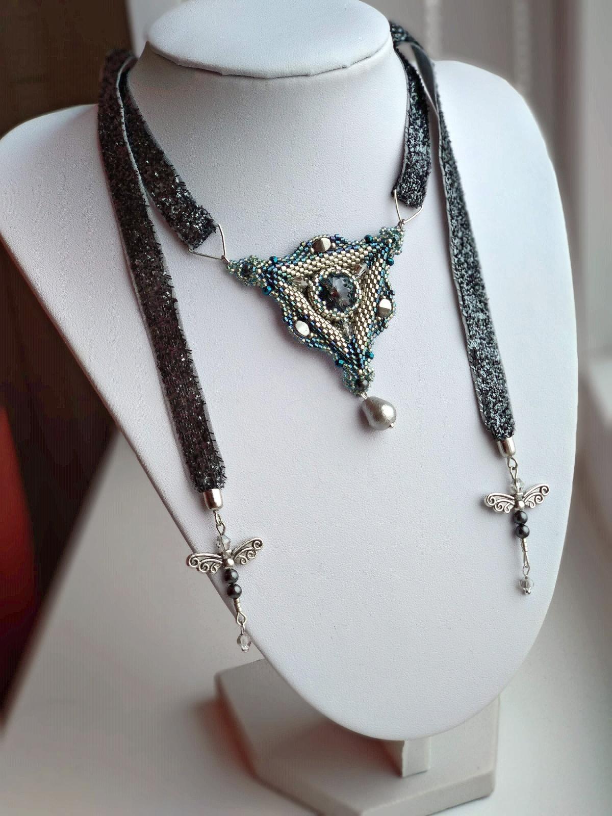 ) и эксперименты с геометрическими формами))В общем, я взяла за основу всем известный треугольник из делики и оформила его по-своему. По крайней мере, мне самой результат нравится, хотя там есть над чем еще поработать — например, над улучшением конструкциеи подвеса, чтобы треугольник меньше зависел от движения шеей. Будем работать в этом направлении.