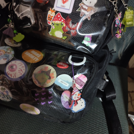 А вот это — так вообще, распечатанная двойственная картинка демоны-ангелы (увидели?), гордо был заделан в брелочное колечко и подвешен к сумке вместо этих лабубив (или как там эти уродцы называются?).