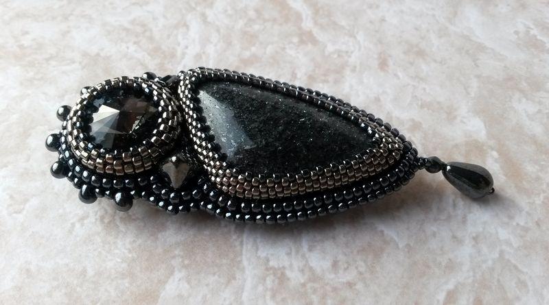 Доброго всем дня! Сделала брошечку на одном дыхании, очень интересный камешек попался — гематит в кварце, сверкает таинственными искорками, но на фото не очень видно.