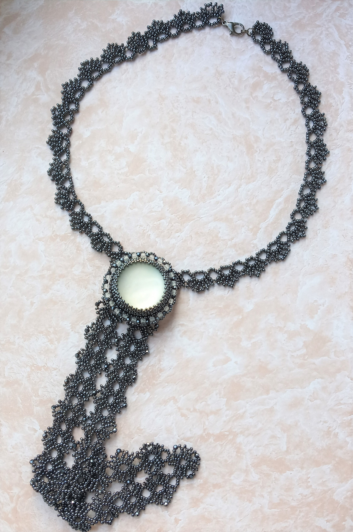 Всем Бусинкам привет! Вот исполнила летнюю хотелку по мотивам нашей Татьяны Германовны (mambush). Спасибо за ссылки и идею. Получилось три в одном — галстук, колье и брошь.