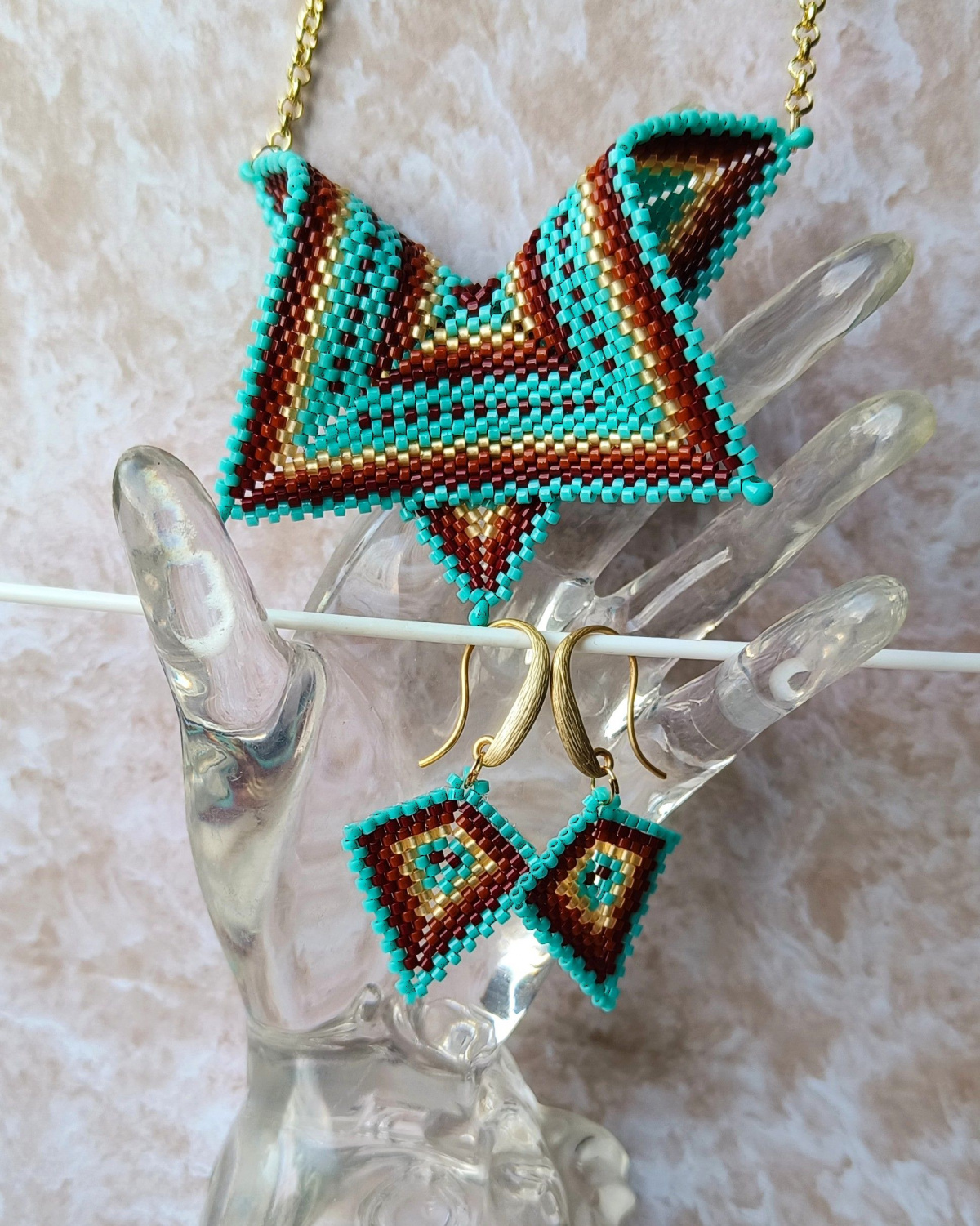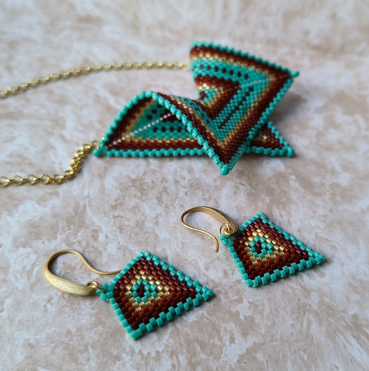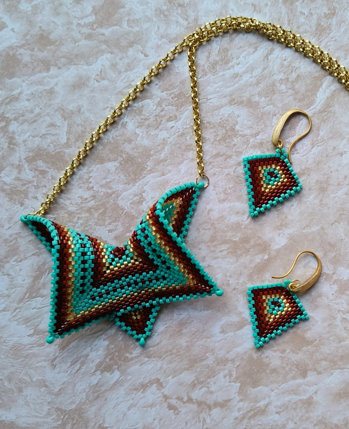 Всем Бусинкам привет! Такую кракозябру я уже плела, но у меня ее купили, а тут в инсте увидела бирюзовенькую да еще с сережками и захотелось повторить, благо бисер делика был.
