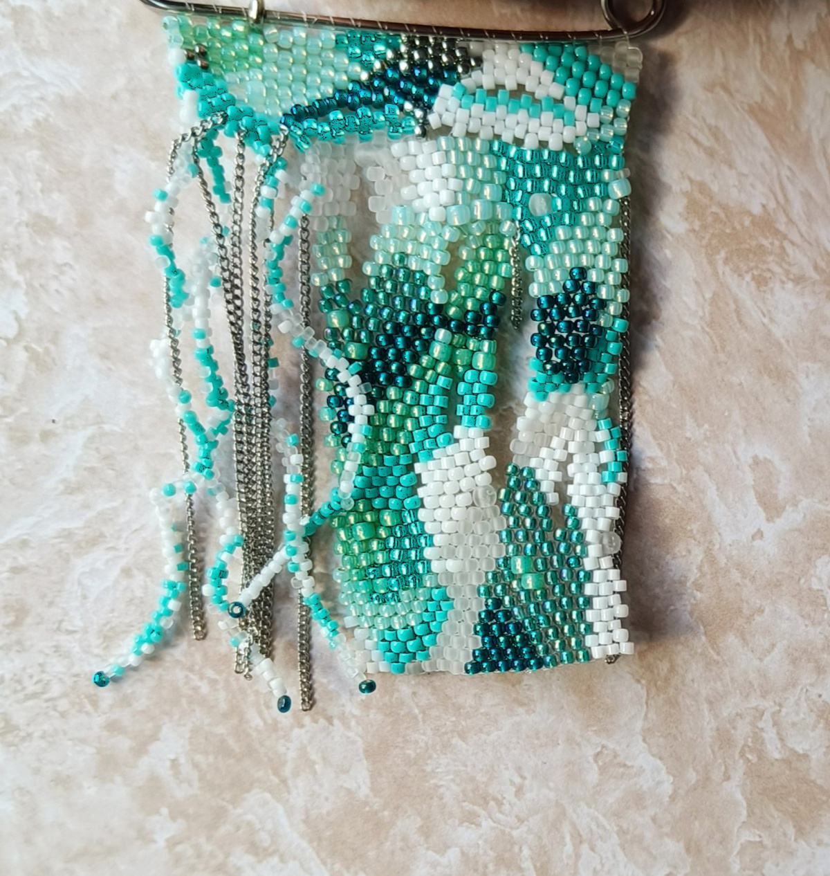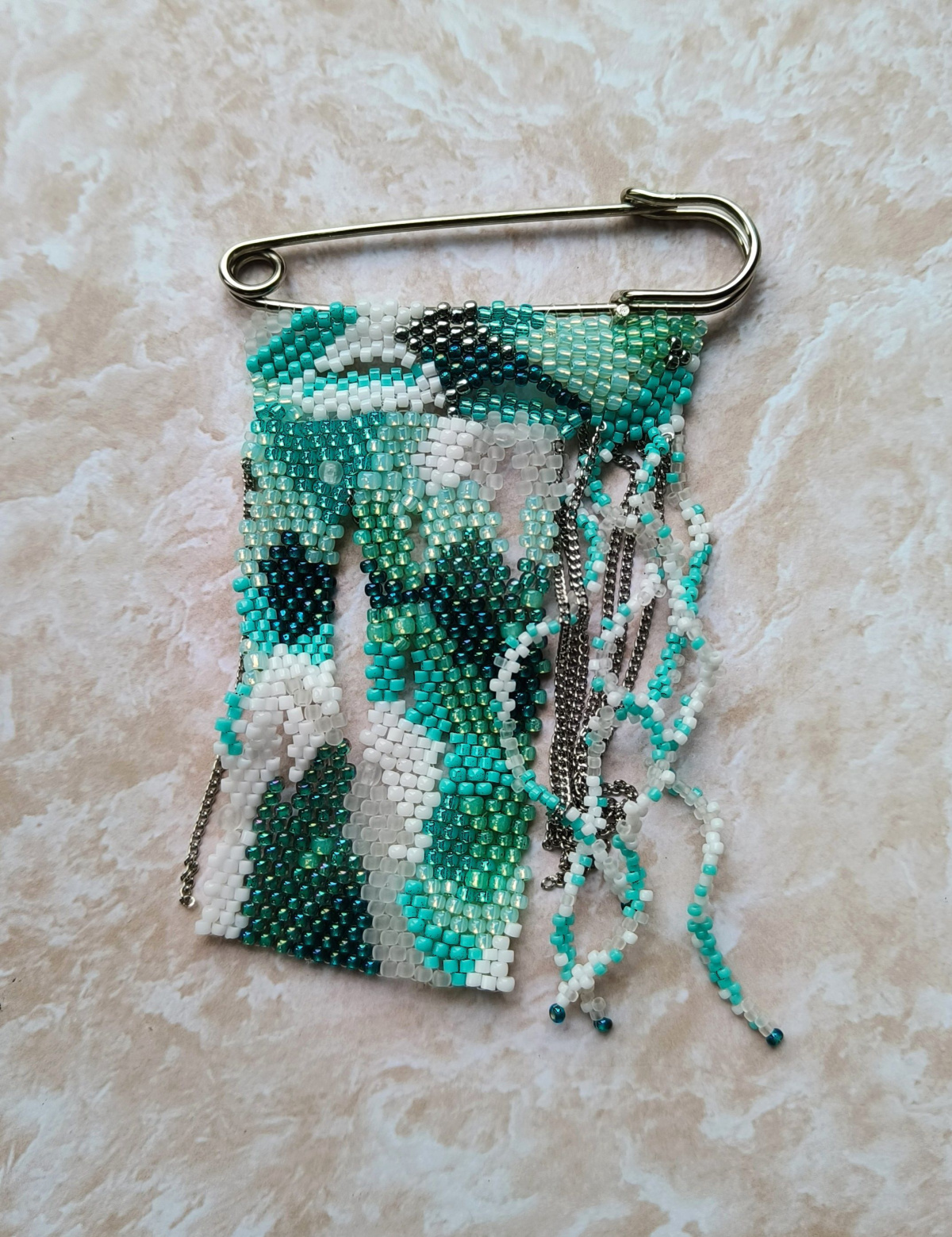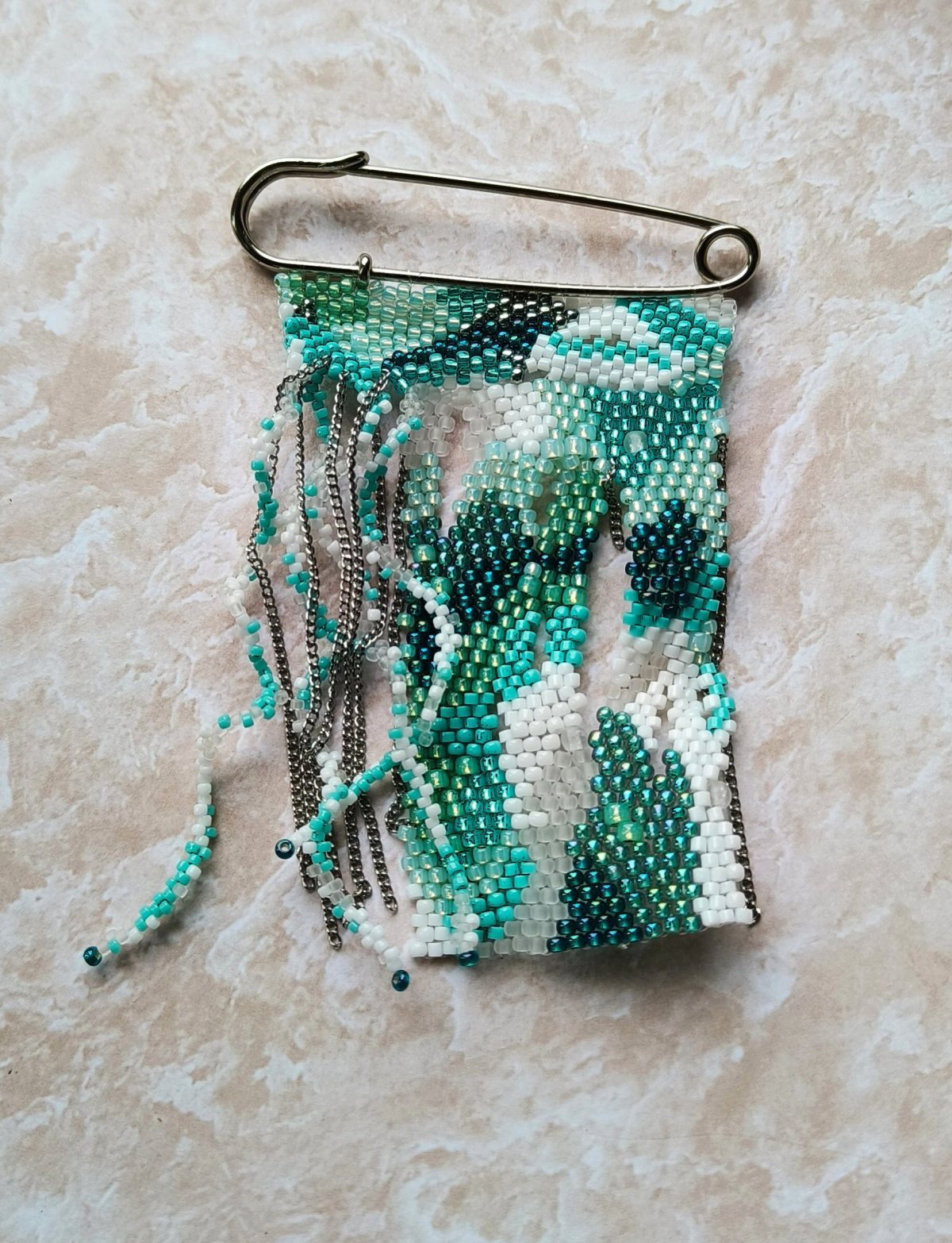Расцветка морская, значит можно и ракушечки, жемчужинки, рыбка-подвеска не помешает