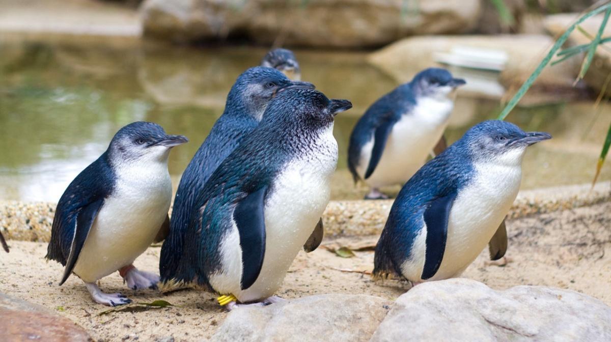 Малые пингвины обитают на побережье Южной Австралии и Новой Зеландии, селятся также на ближних островах. Это самый маленький вид из всех ныне живущих пингвинов – их рост не больше 40 см. А еще он считается самым ночным видом, так как выходят они на берег уже после заката солнца. Со снегом и льдом они вряд ли знакомы… роют норки на песчаных и каменистых берегах. Малые пингвины очень общительные, иногда они показывают целые «концерты». В Австралии такие концерты считаются местной, уникальной достопримечательностью. На острове Филлип-Айленд в 150 км от Мельбурна сооружены специальные трибуны, позволяющие наблюдать так называемый «парад пингвинов».