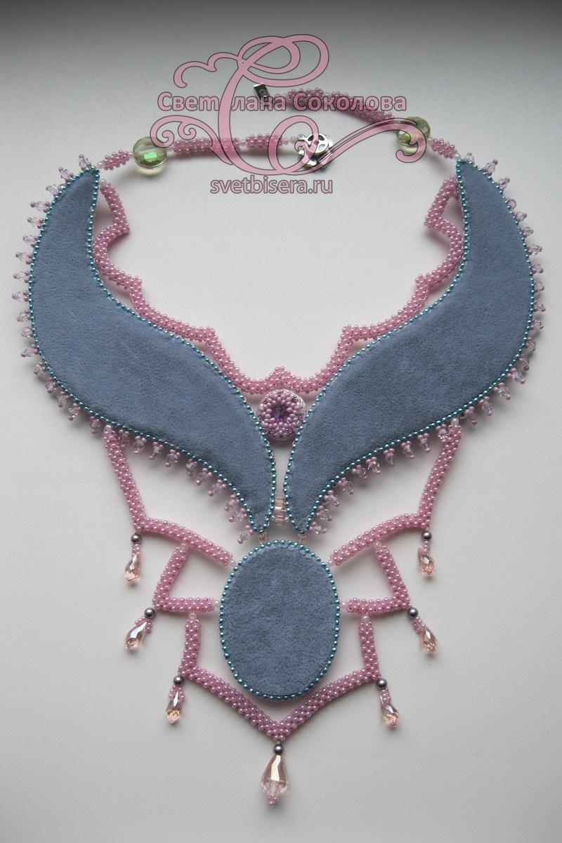 Но всё таки что-то смущает. Идея с тканью — великолепна. Но по бокам квадрожгутные «кружева» грубят общий образ. По внутренней окружности колье квадратный жгут не смущает. А вот к камню которые — лишние (ИМХО, с которым можно не согласиться)