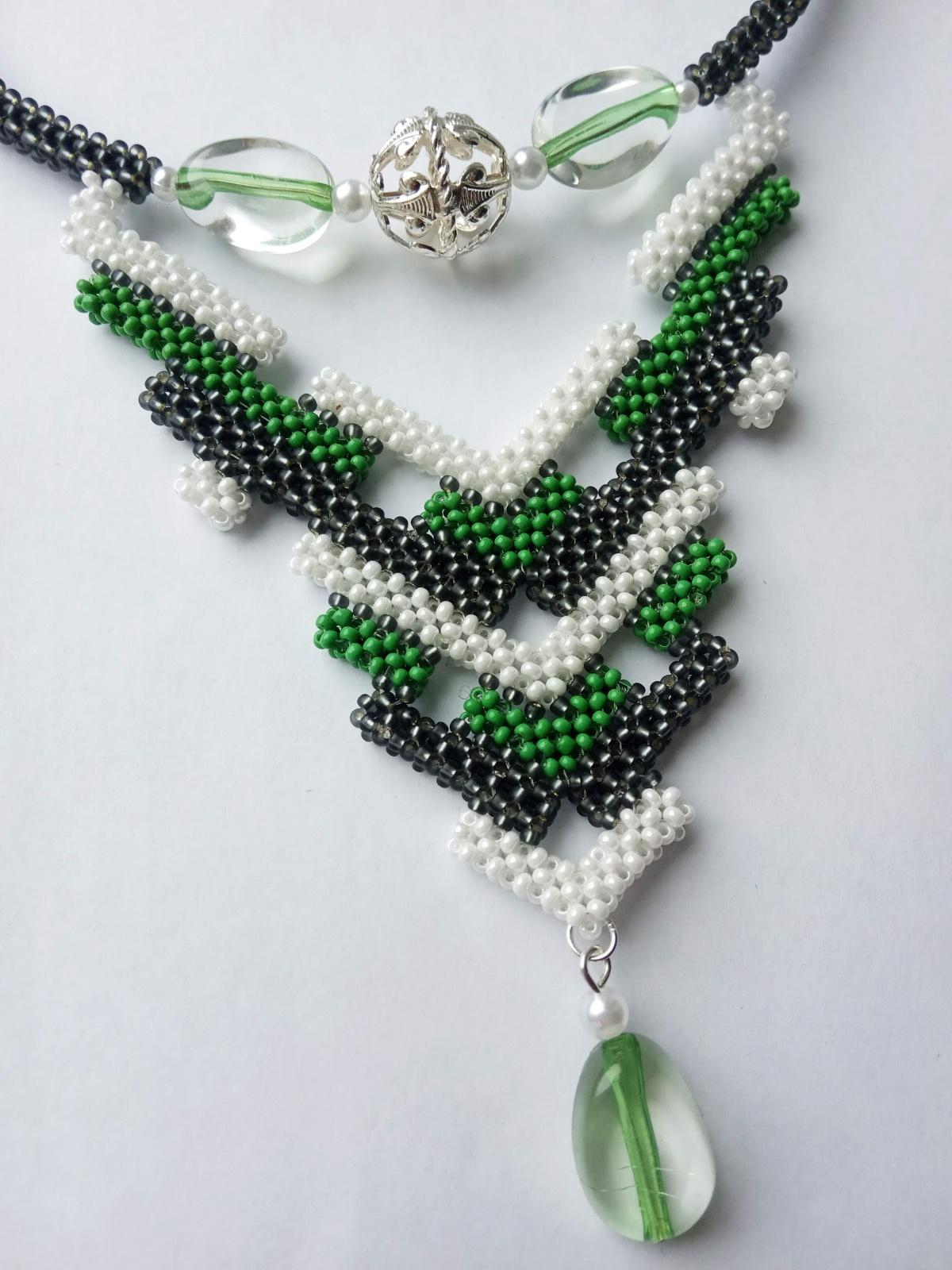 Никто не ожидал такой зимы, которая пришла к нам в этом году и раскачивает нас как на качелях, кидая то в жар, то в холод. В начале декабря выпал первый снежок, но, как водится, долго не задержался. Все растаяло и зазеленела трава. Через некоторое время снова похолодало и накрыло снежком. А уже завтра синоптики обещают плюсовую температуру с дождем… Вот под впечатлением от этих капризов погоды сплелось это колье...