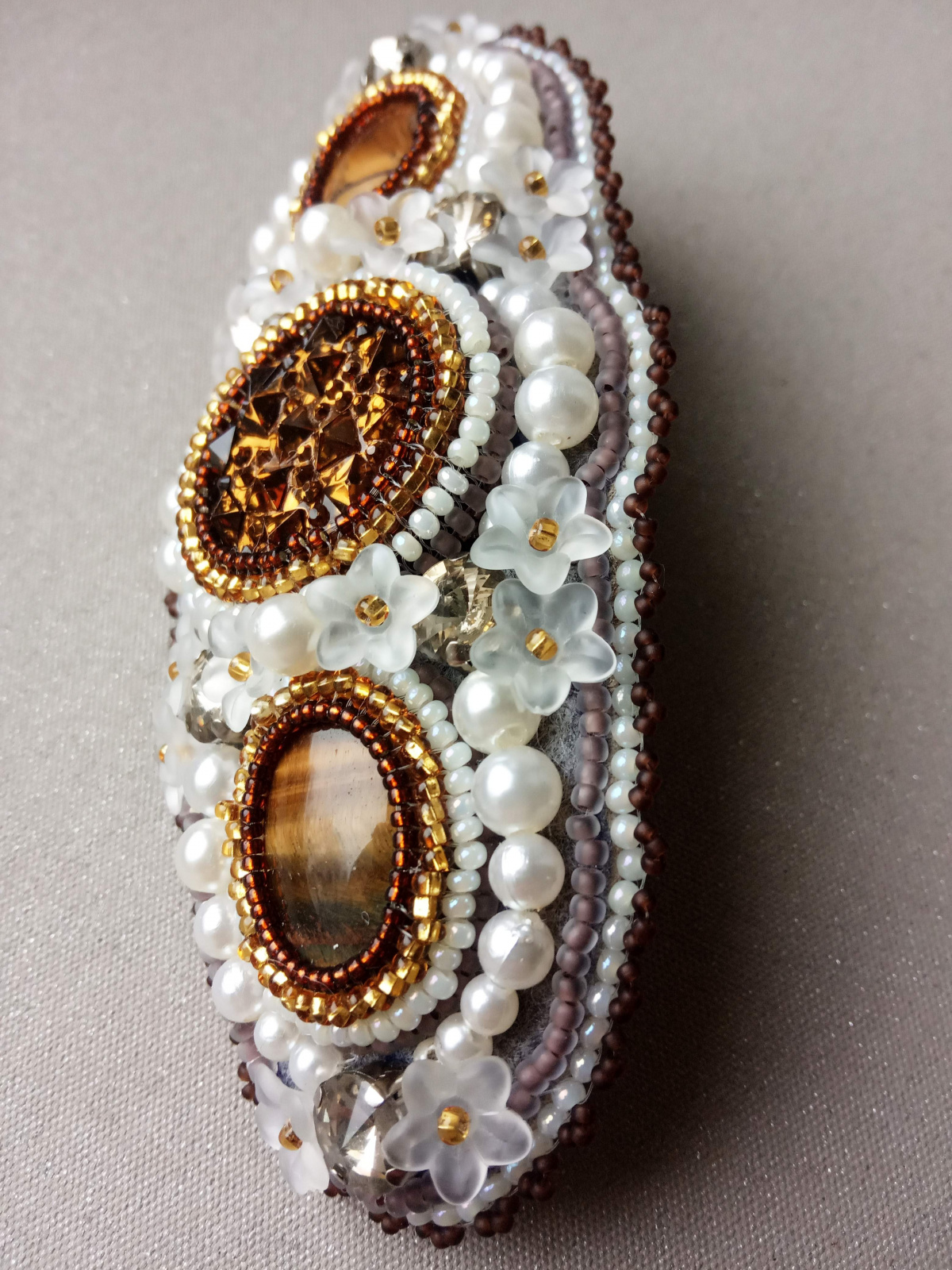 Большое спасибо, Мария! Как я уже отмечала выше, что это пробная, т.е для внучки я мечтала сделать ягодно-цветочную, а какой размер основы выбрать не знала, поэтому взяла десятку с прицелом, что ее оставит себе дочка, а внучка только примерит и опробует новый способ справляться с волосами самостоятельно. Так что если ей такая заколка понравится, для нее будет сделана другая.