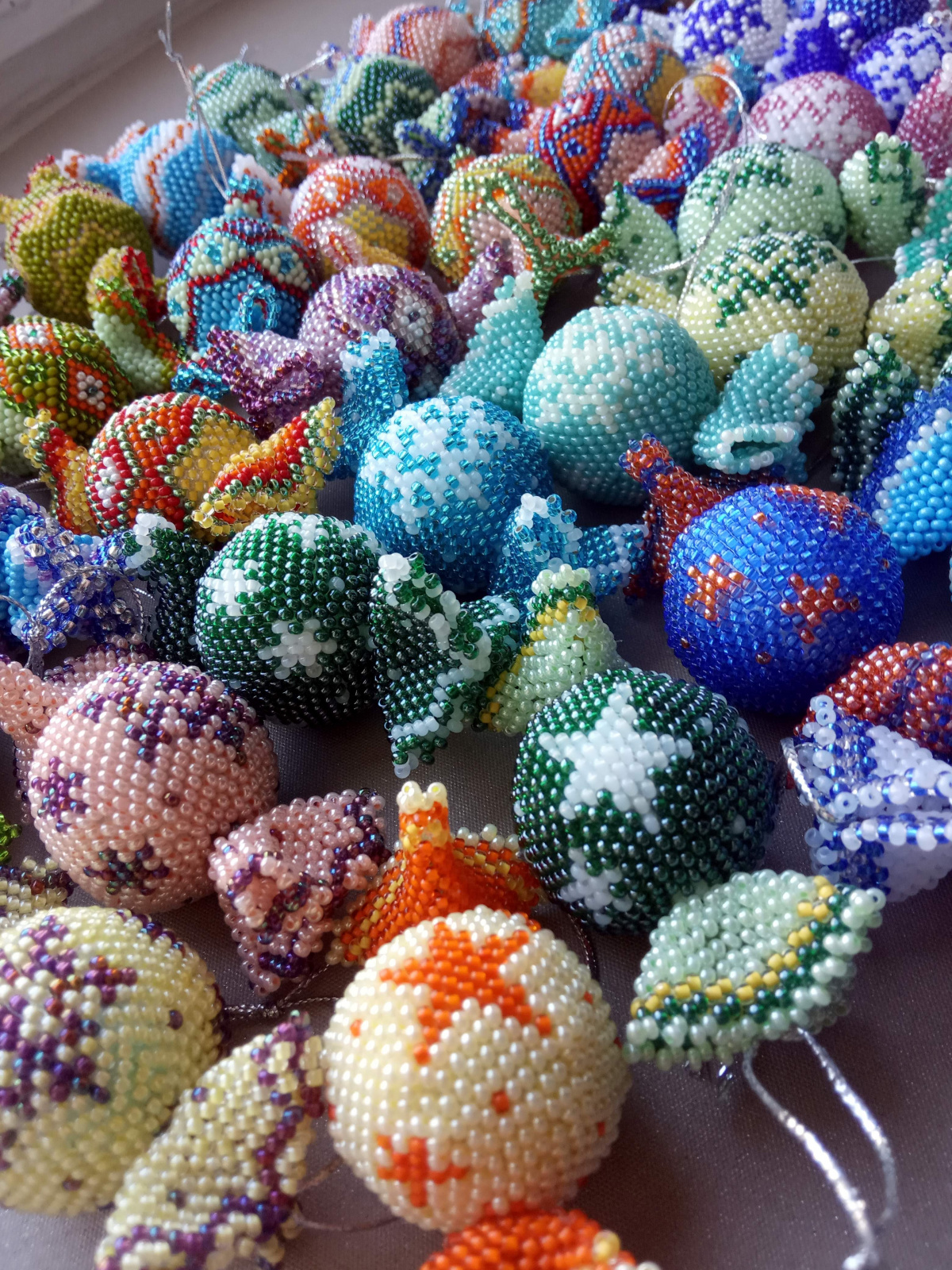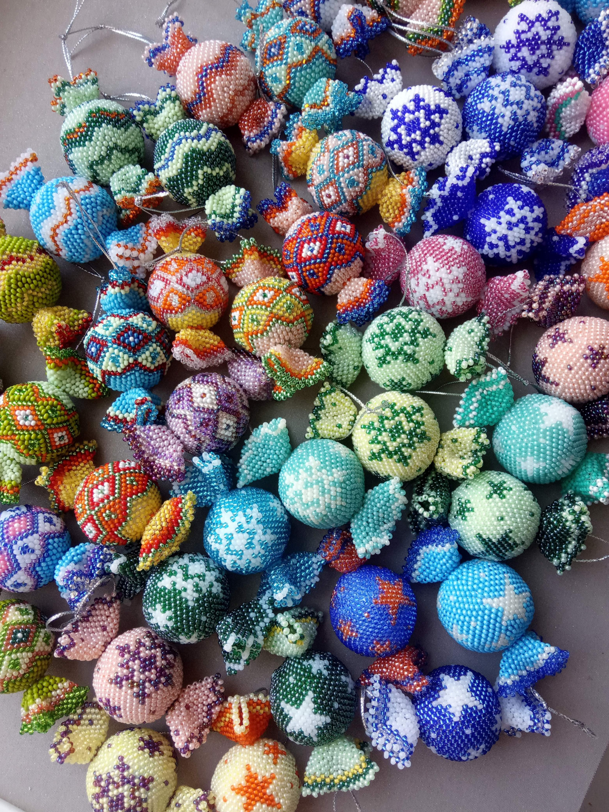 Вот и моя традиционная предновогодняя работа закончена. На этот раз в наборе было уже 48 шариков, на оплетение которых у меня ушло 48 дней