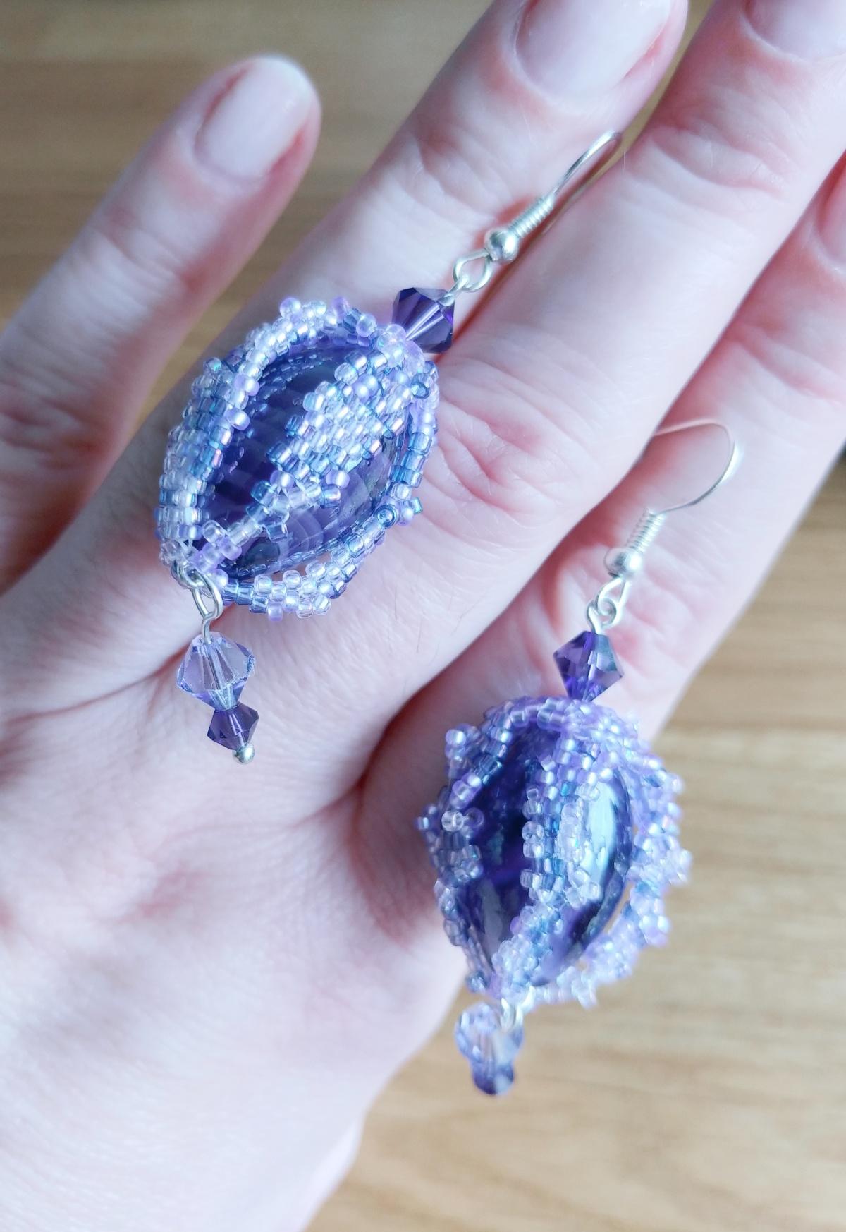 Серьги с бусинами цвета спелого винограда.