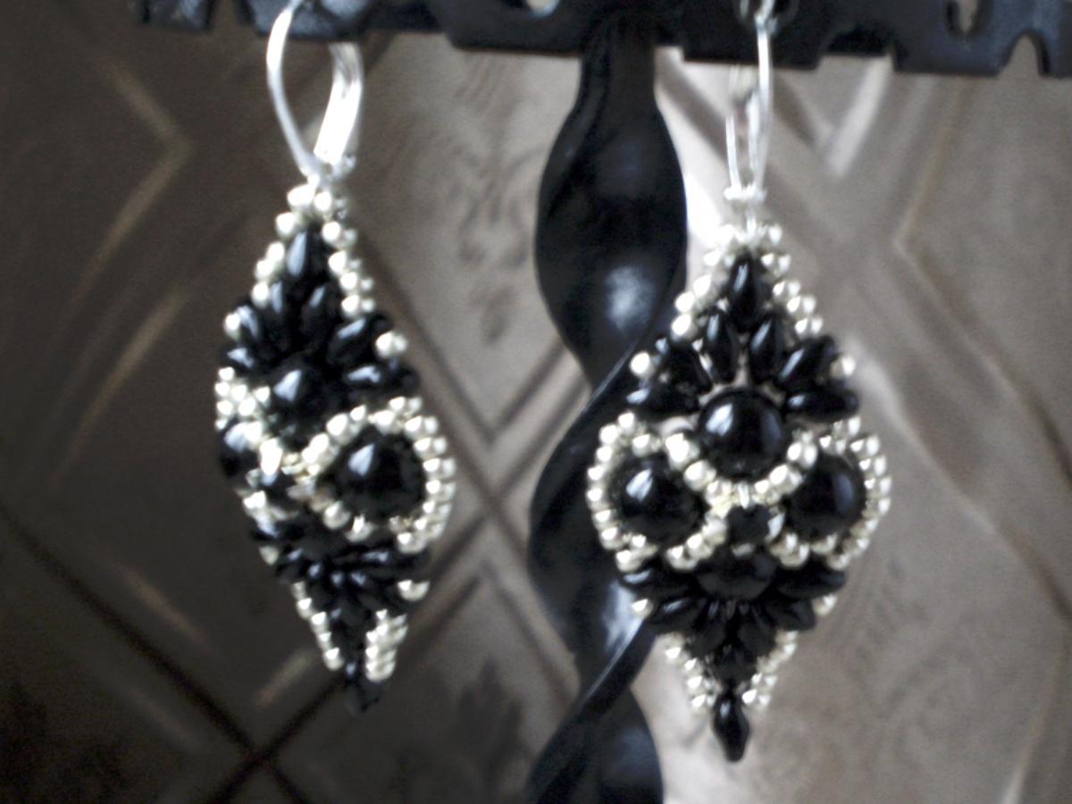 Использован собственно черный Superduo, серебристый Miyki Duracoat, бусины, шатоны и посеребренные швензы.