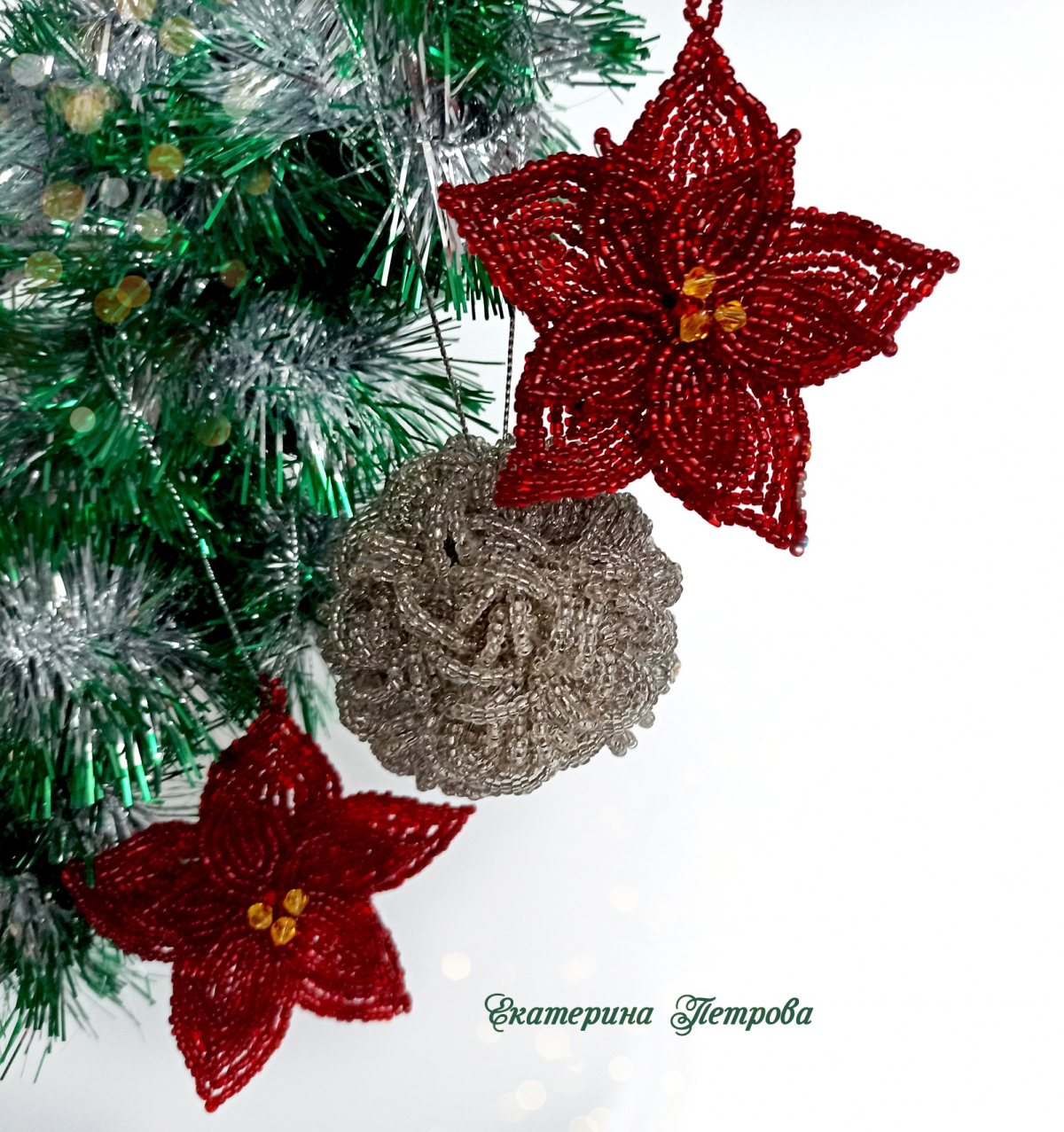 А я тут как раз с новиночками. Сплелись у меня пуансеттии на елку. Сплела лепестки, одну собрала уже давно, а две все никак не собирались, вот в новогодние каникулы наконец и они собрались. Наборчиком то веселее :2: