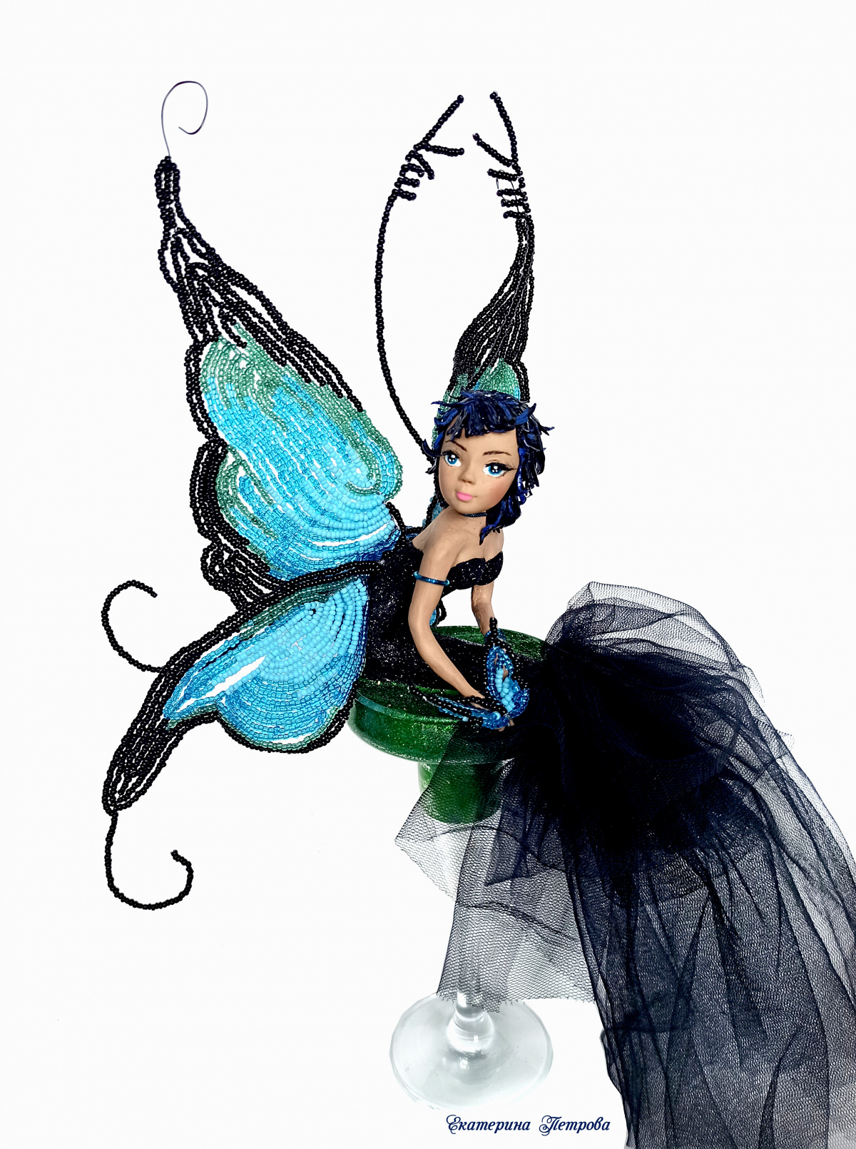 , что девочка лепилась с трудом, т.к. полимерка так и норовила растечься, пришлось делать кучу подходов с запихиванием бабочки в холодильник, чтоб уменьшить текучесть и много этапов запекания, дабы нечаянными касаниями не испортить слепленное. Может кто лепит поможет такой небольшой лайфхак в очень жаркую погоду.