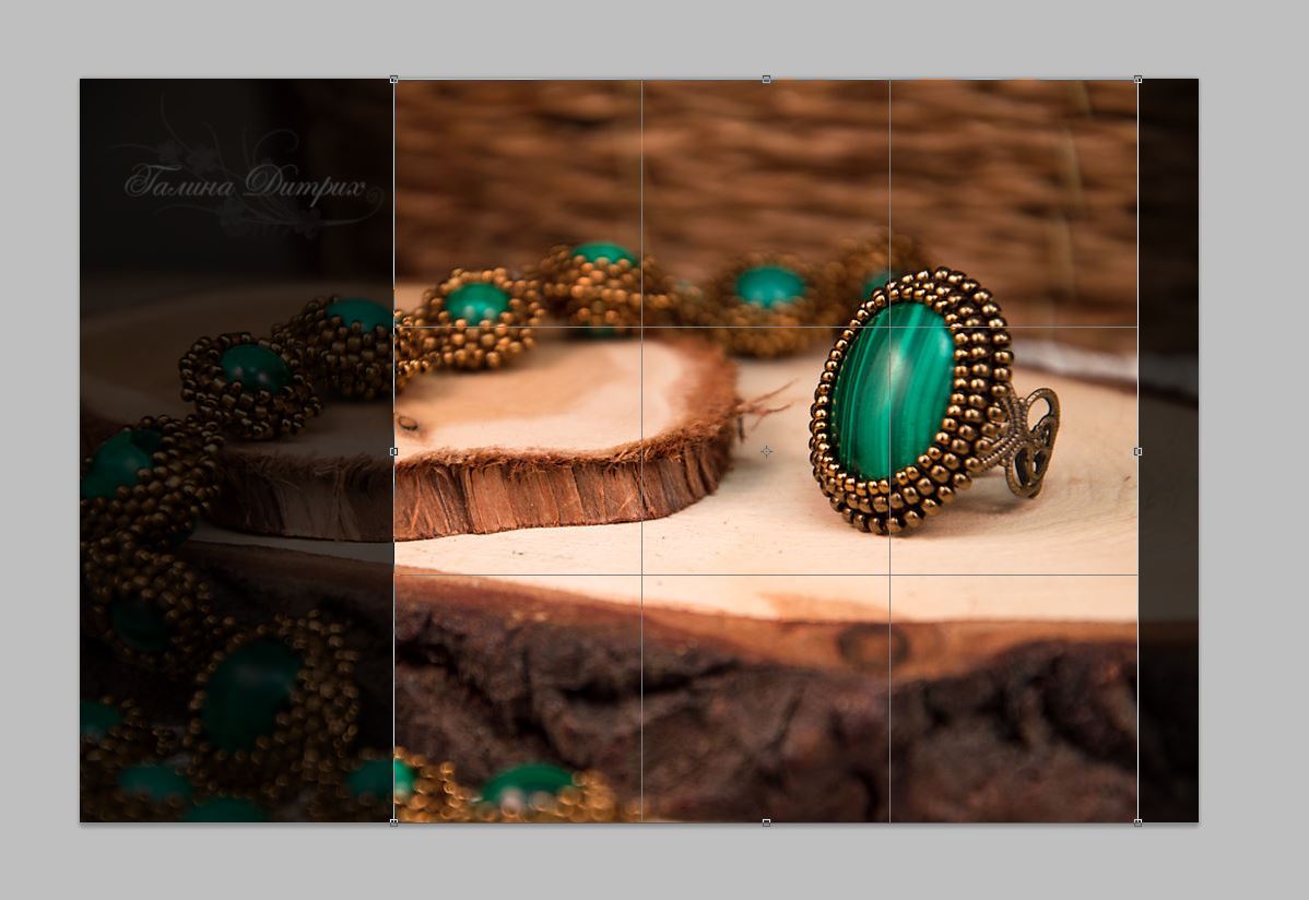 Так выглядит элемент квадратного кадрирования в Photoshop с автоматической разметкой линий третей:
