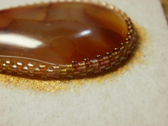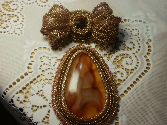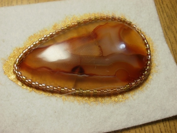 Кабошона не нашла, оплела бусину. Можно её пришивать? С уважением, Раиса Петровна.
