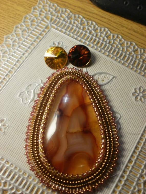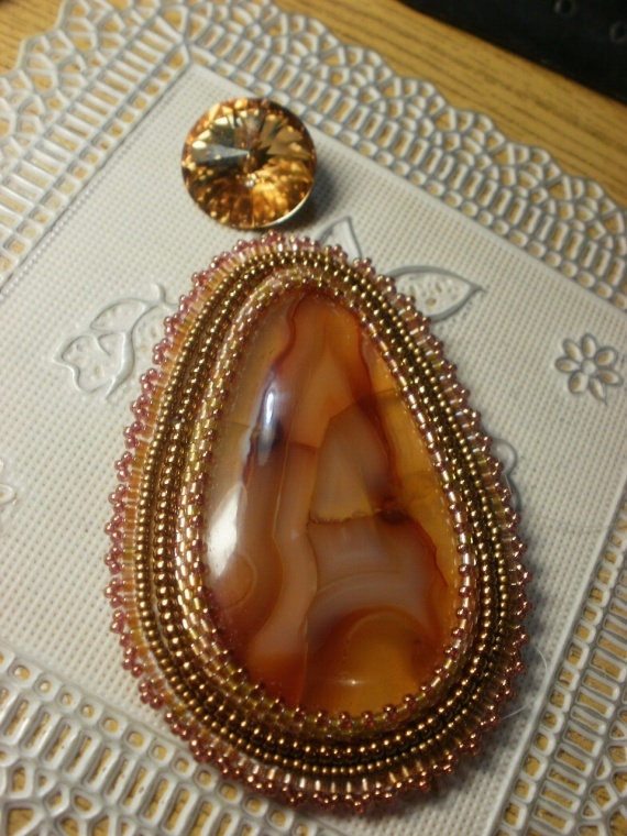 А ещё есть, как мне кажется, идеально подходящая по цвету риволи, но она №18. Правда, и камень у меня немаленький. Капля вместе с оплёткой около семи см. Может, эта риволька и будет гармонична при таком размере?