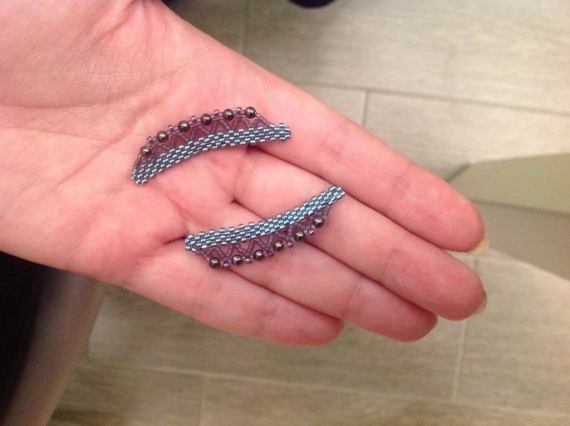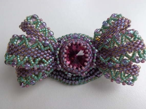 По моим ощущениям, широкие однотонные полосы смотрятся хорошо, когда они из гальваники плетутся. Если бисер неметаллик и непрозрачный, лучше бы по краям пустить бисер в тон зубчикам, чтобы бант был более воздушным и легким.