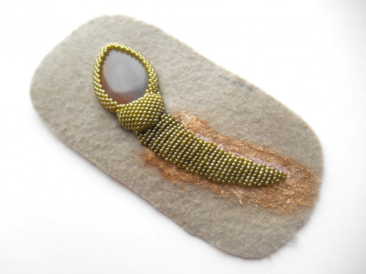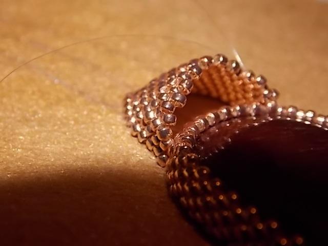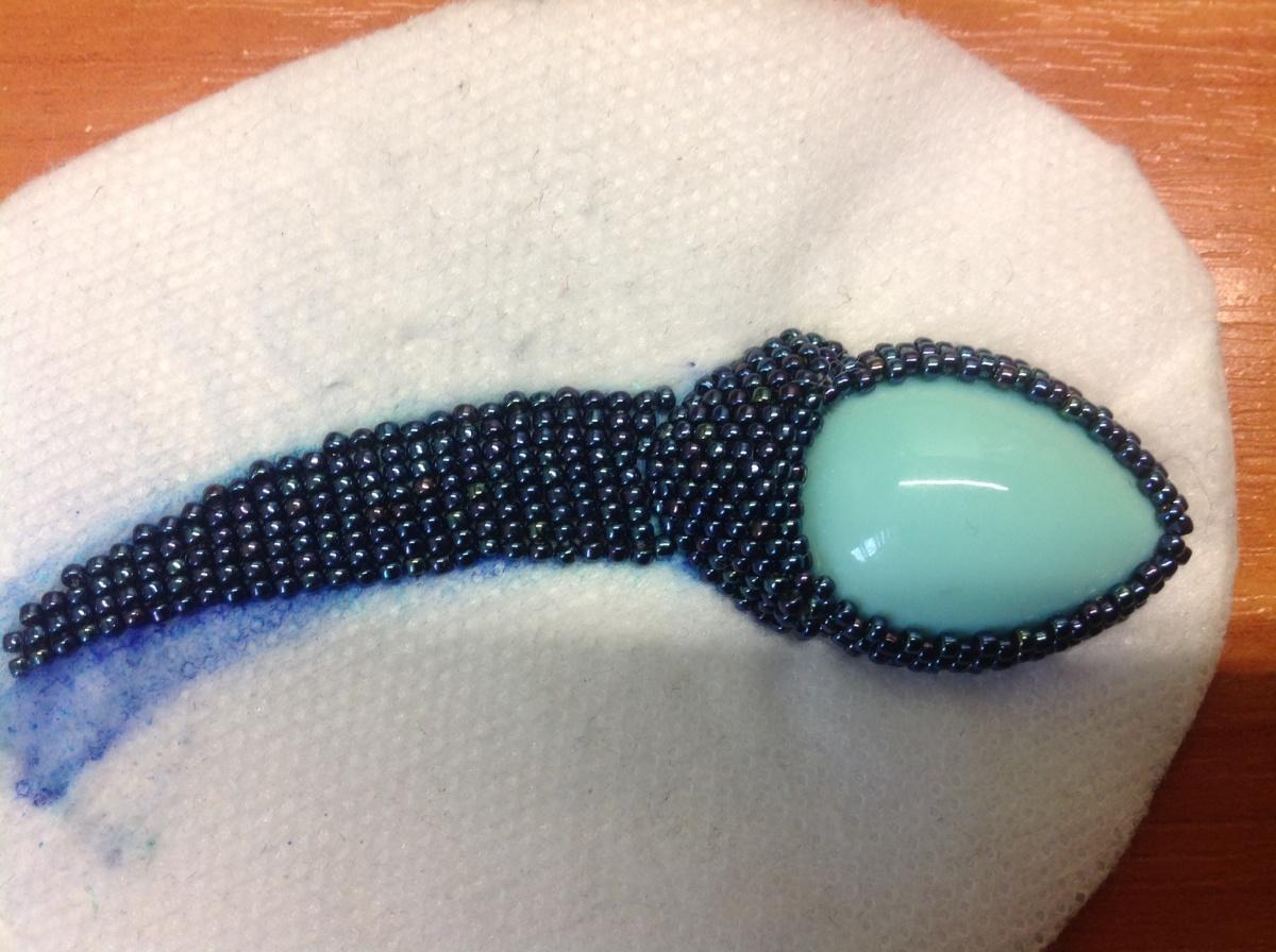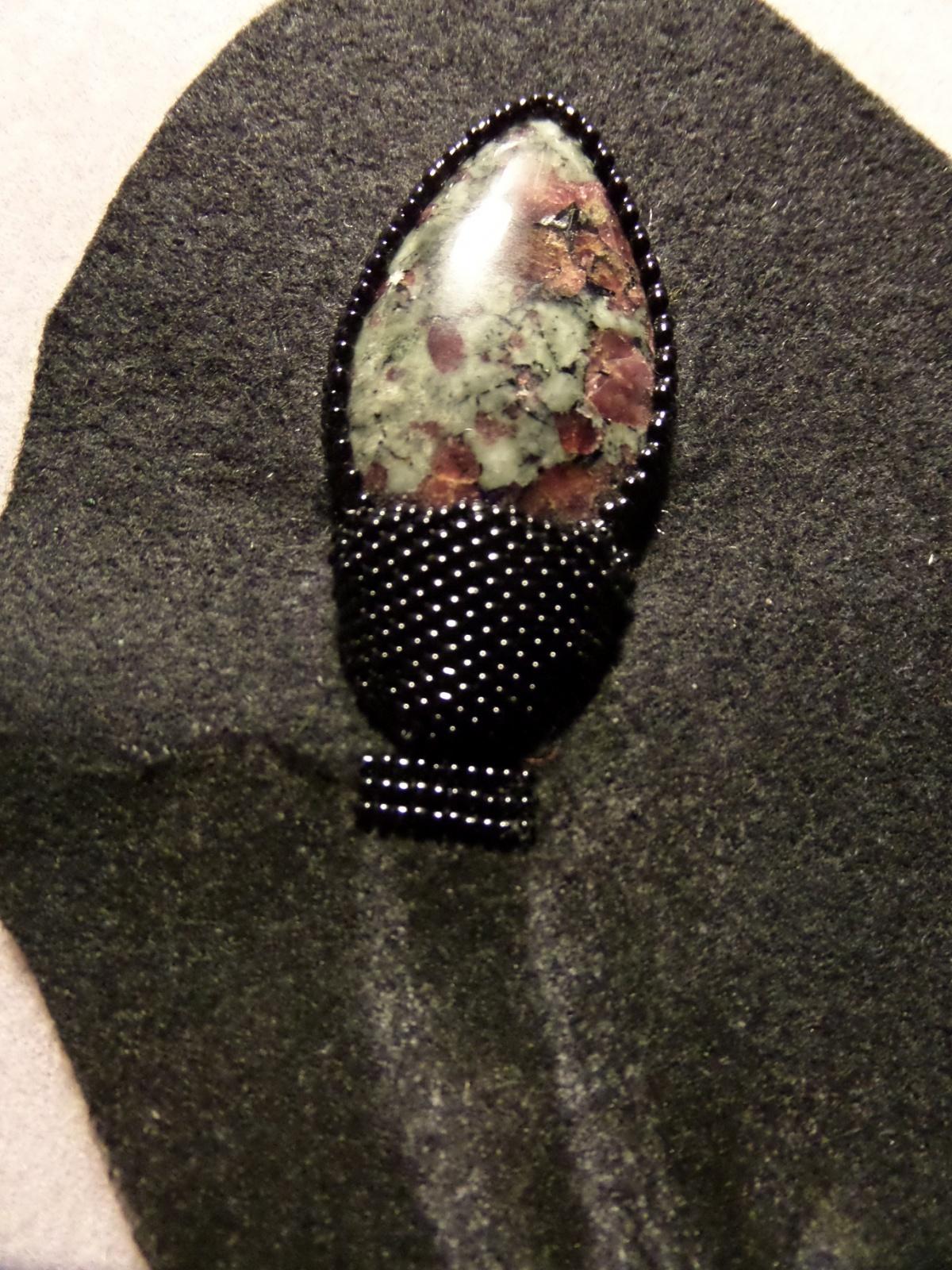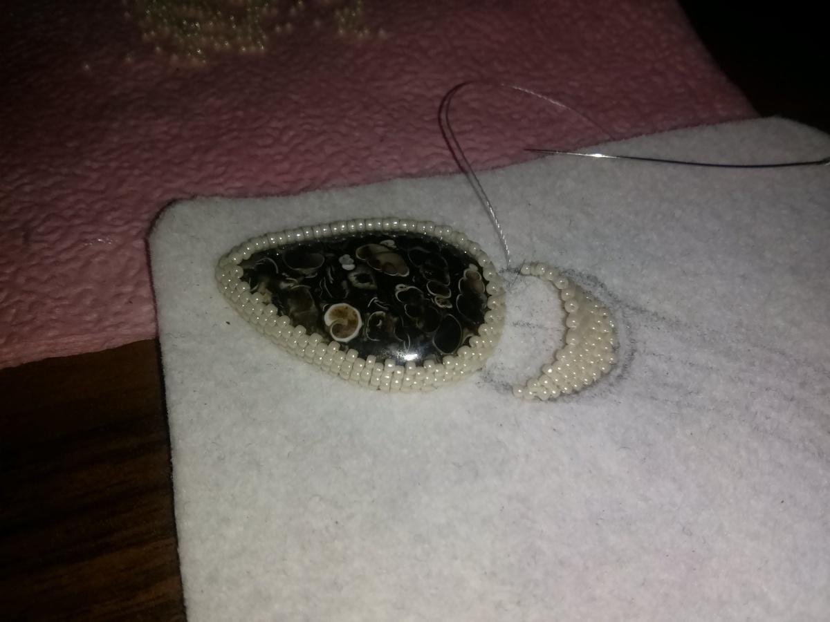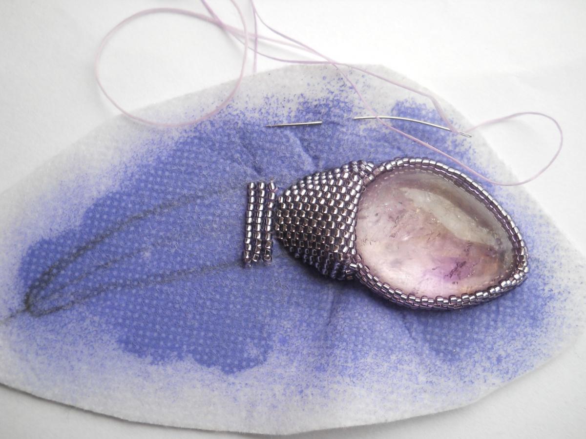 Почему-то никак не могла уловить момент окончания расширения бубочки, к камню всегда подходила с очень широким «Куполом», так и не поняла алгоритм, если только начинать бубочку ближе к камню, чтобы она не успела разростись вширь? А плести бубочку без расширения мозгов не хватило… Пыталась, но без добавления бисерин не получилось.