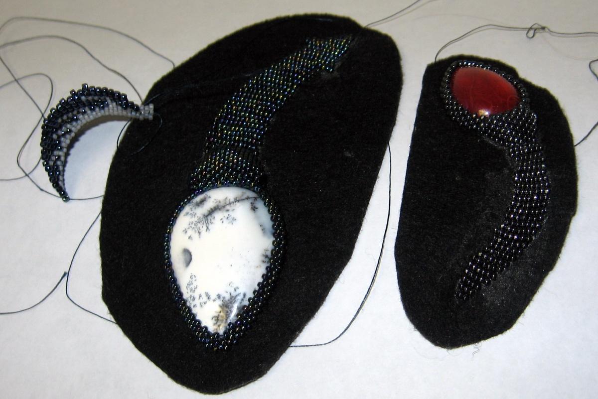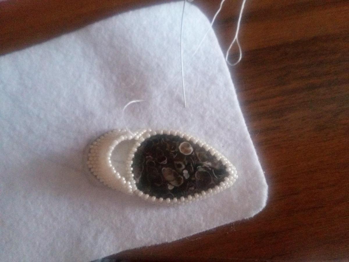 Я хочу сделать такие вот кружева — капельки, бусинку обведя полоской ндебеле в 2 бисерины, для жёсткости посадив её на струну (проверила, пролезает). Правда я подобное только на фото видела и при этом ни разу с такими крупными камнями. Может что-то подскажете по технике?