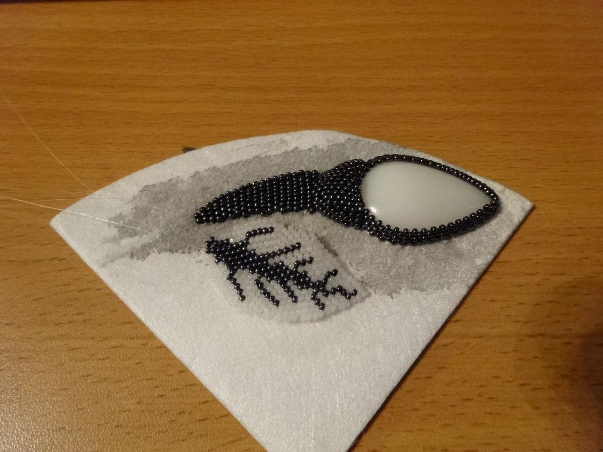 Ножку я оставила ту же, что и выше уже сдавала. Только одну бисеринку убрала — самую нижнюю.