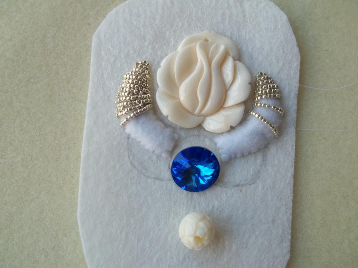 вышивка ложится поперек, самые крайние бисеринки ложатся дырочкой прямо на основу