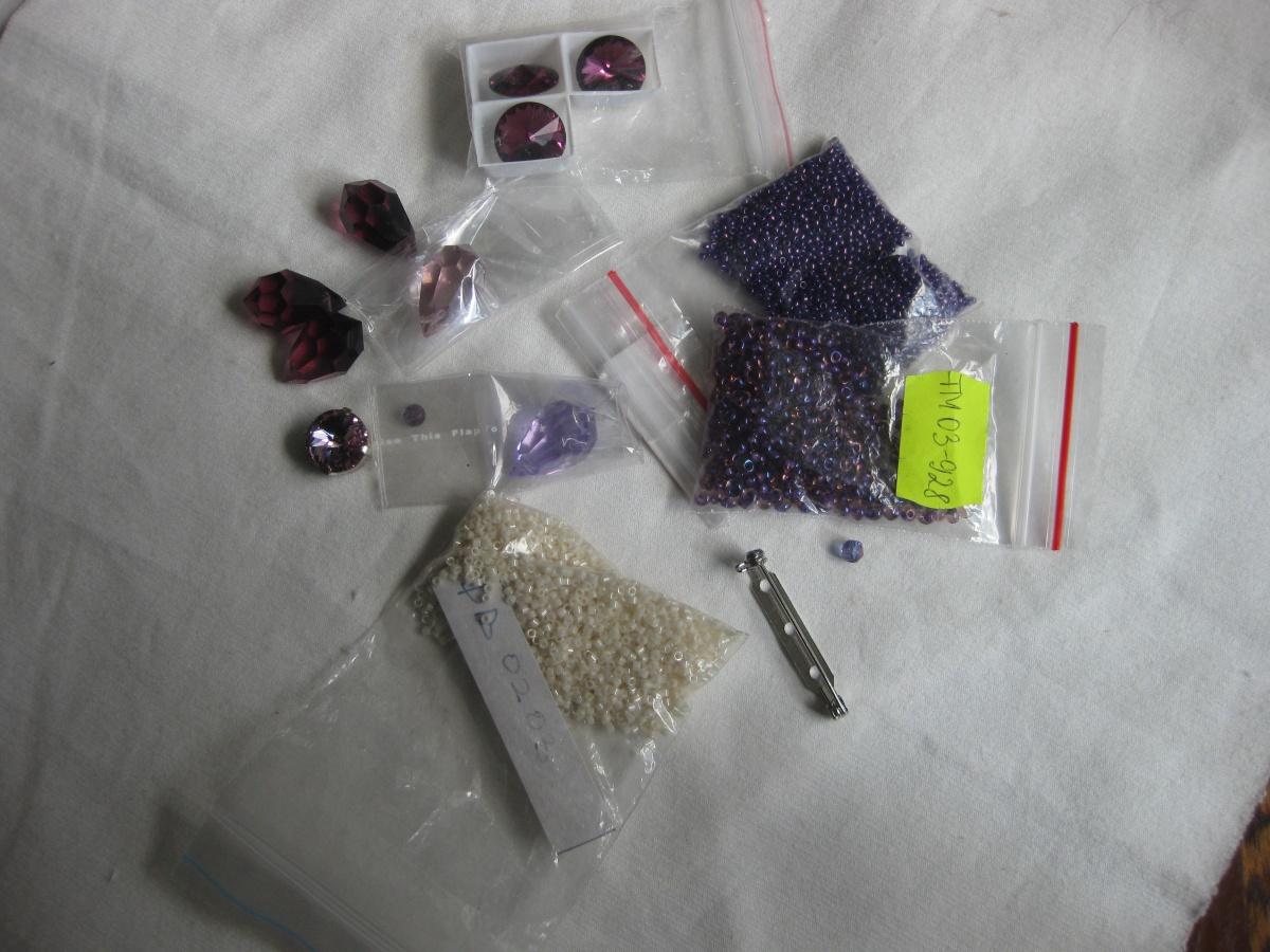 Для висюлек тоже 3 бусины блестяще-тёмно-фиолетовые. Остальное по ходу действия думать буду.