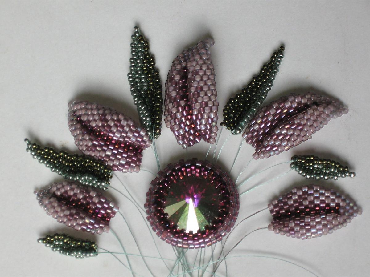 Малюсенькое замечаньице, то же, что и у девочек выше — стянуть бы лепесточки нитью по краешкам так, чтобы между бисеринами пятнашки оставалось поменьше пространства. Тогда они «скукожатся», и будут больше похожи на настоящие лепестки)