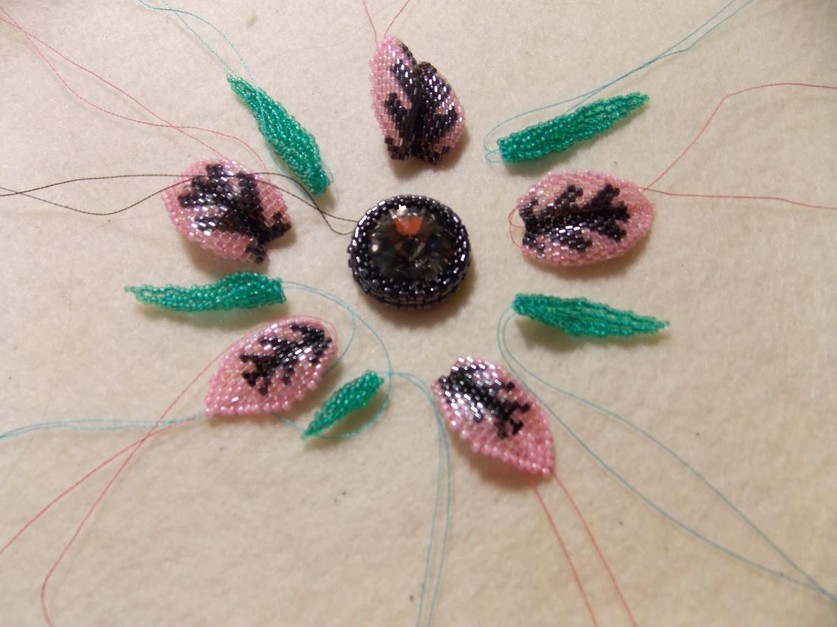 Лепестки стянуть по краешкам чтобы между бисеринами пятнашки на было промежутков.