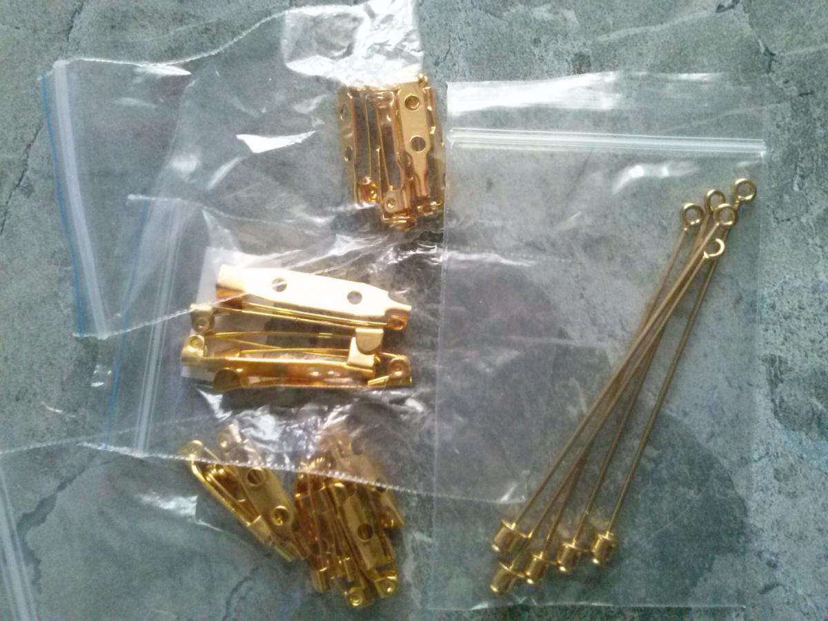 Застежка — булавка пришивная или какой-то другой вариант, например, с сеточкой, вставляющейся в круглую основу с булавкой.