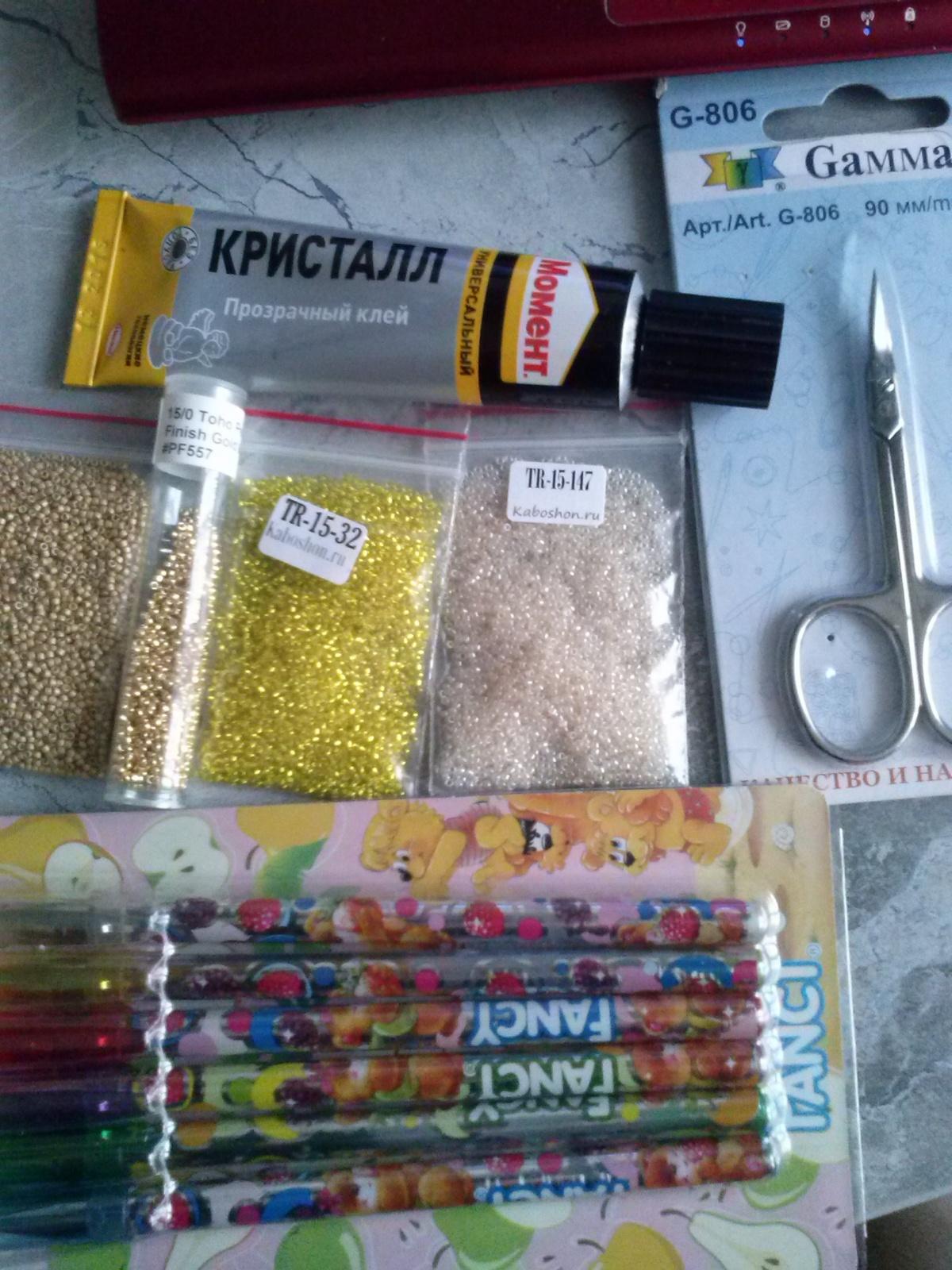 органза, бархат — заказаны, посылка в пути к постамату пикпоинт сейчас, мулине только металлизированные, если не годится — куплю простые нитки, иглы, карандаш, клей есть.