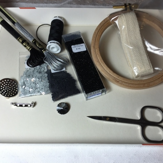 пяльца и картон тоже есть, завтра куплю нитки и бархат, пайетки через два дня будут — едут уже.