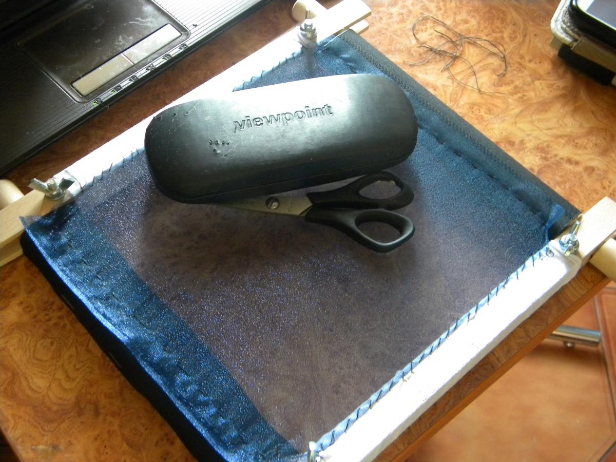 К верху и низу органзы пришиваются полотна ткани и натяг регулируется поворотом валиков. По бокам органзы я тоже пришиваю полоски ткани и ниткой присобачиваю к бокам рамы. Мне в первую очередь надо верх/низ натянуть? А потом уже бока?