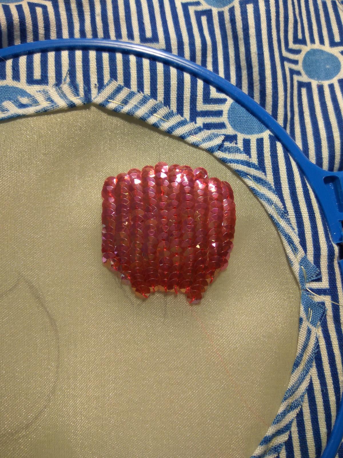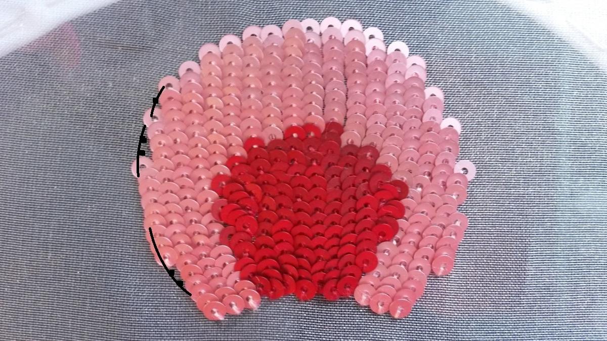 Оказывается 1000 штук пайеток — это так мало, поэтому внешние лепестки будут темные, внутренние светлые. Под конец вроде симметрия появляться стала