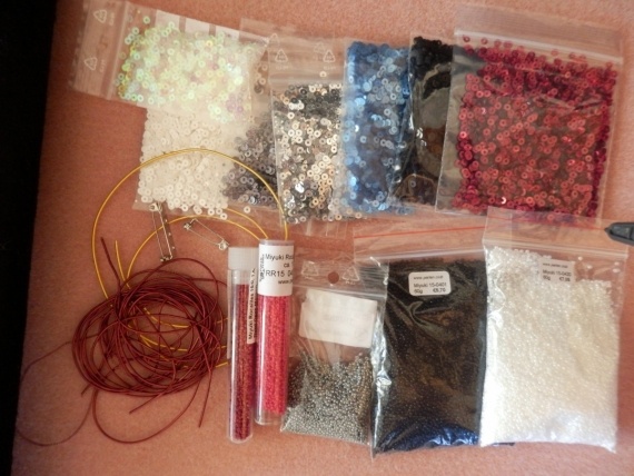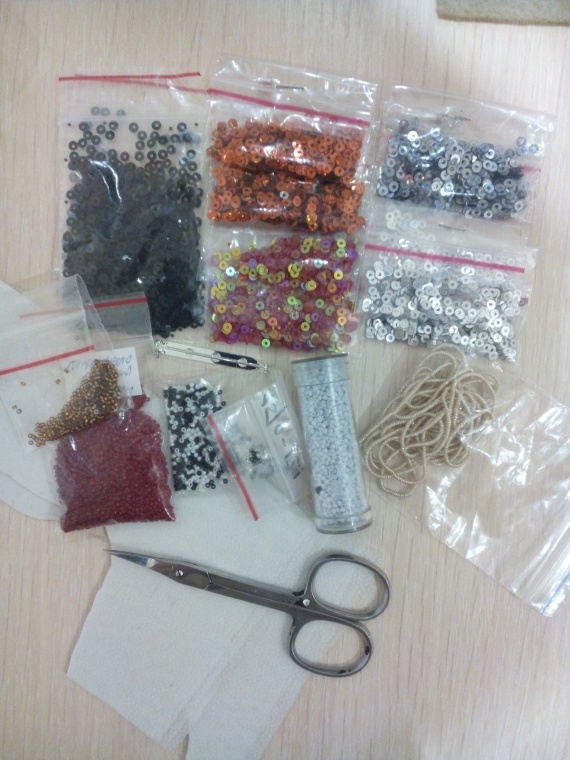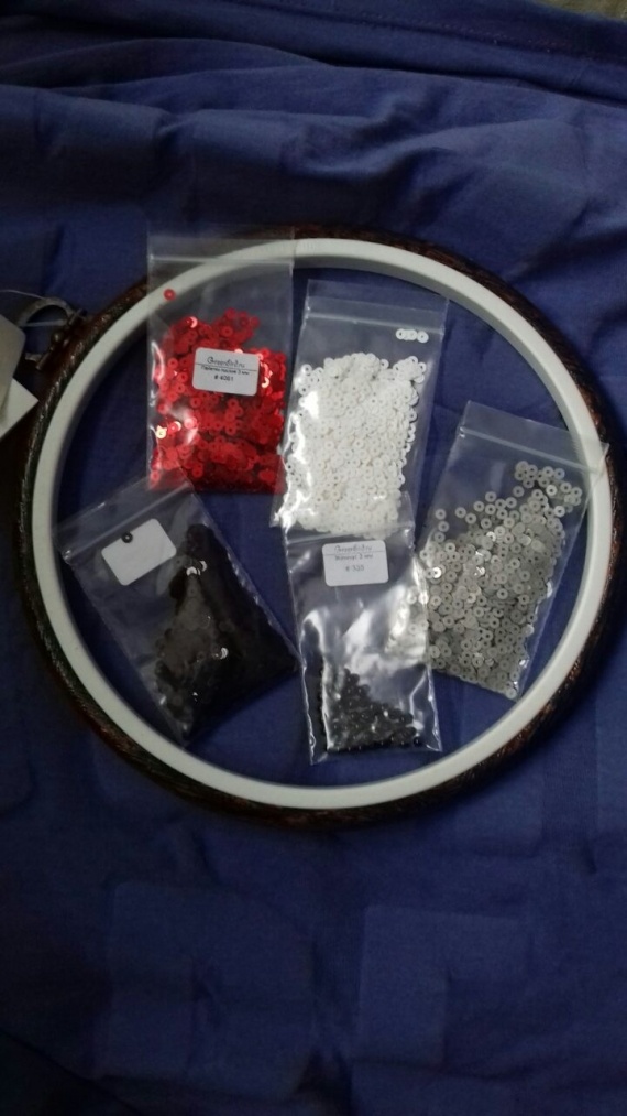 Дополнительно ко мне едут еще оттенки красных и серых пайеток и черная канитель, посылка будет на следующей неделе.