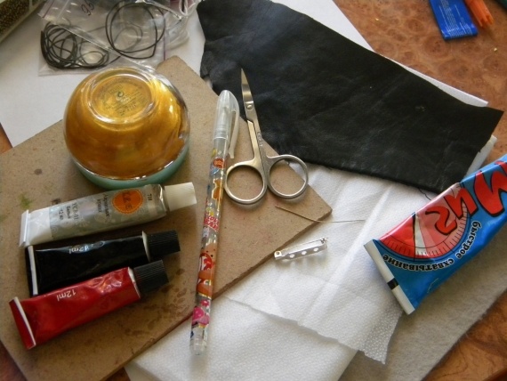Ножницы, иглы, застежка, клей и кожа все есть, но дома… пишу с работы!