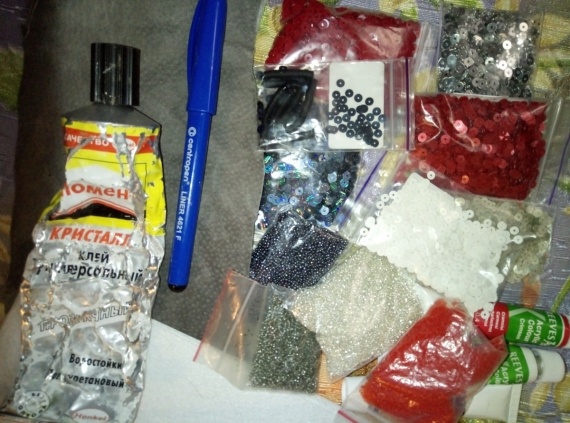 Пайетки чёрные, красные, серые, белые ещё закажу или же, если не успеют прийти, буду делать в тех цветах которые имеются в наличии)))