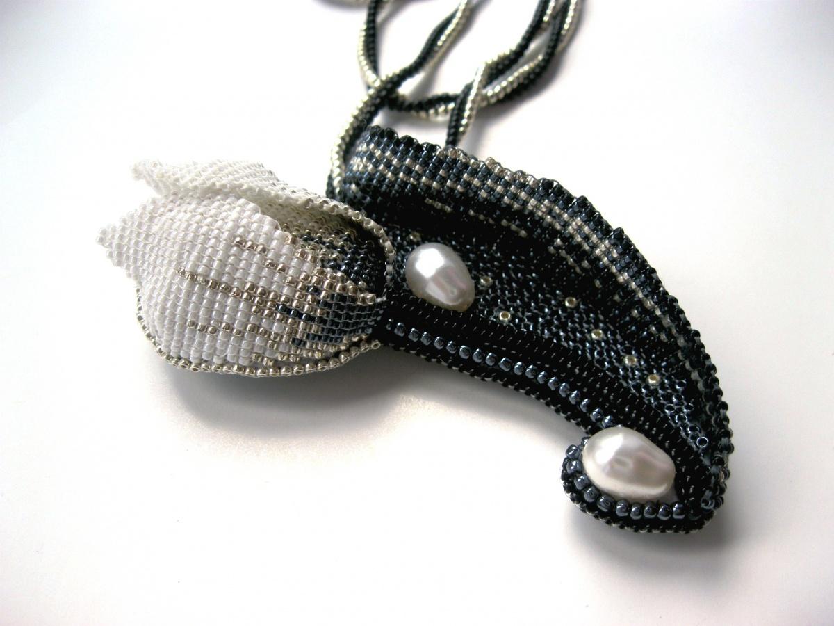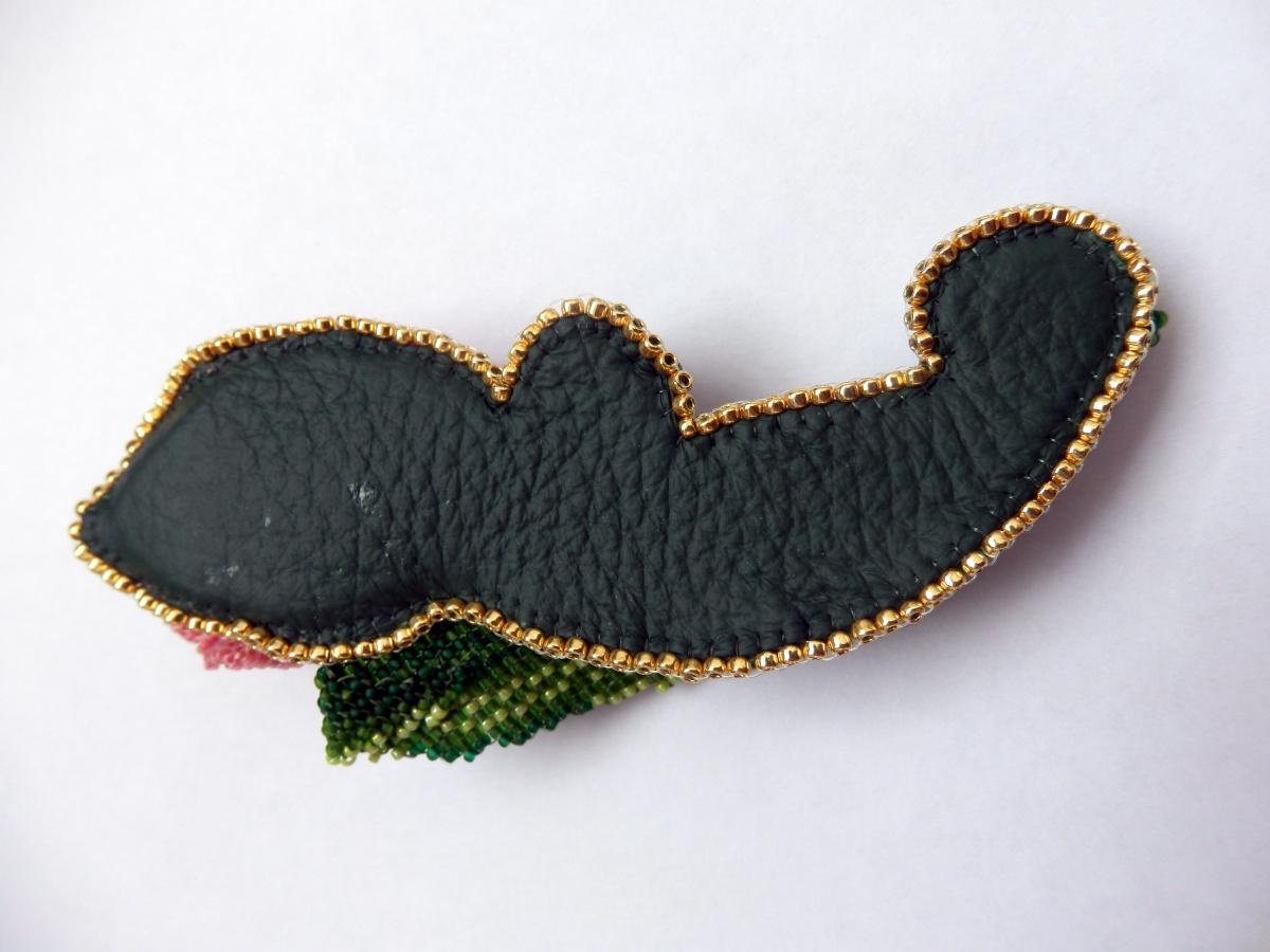 А листик лучше пришивать темной стороной вниз!) Я сначала пришила светлой стороной, не понравилось, сильно волнился лист. Спросила у Вас, ответ получила. Пришила темной стороной вниз, уже лучше, мне больше нравится.А по поводу заделочного ряда, я почему-то думала, нет, уверена была, что 11-м бисером.А оказывается, надо 15-м. Можно оставлю?