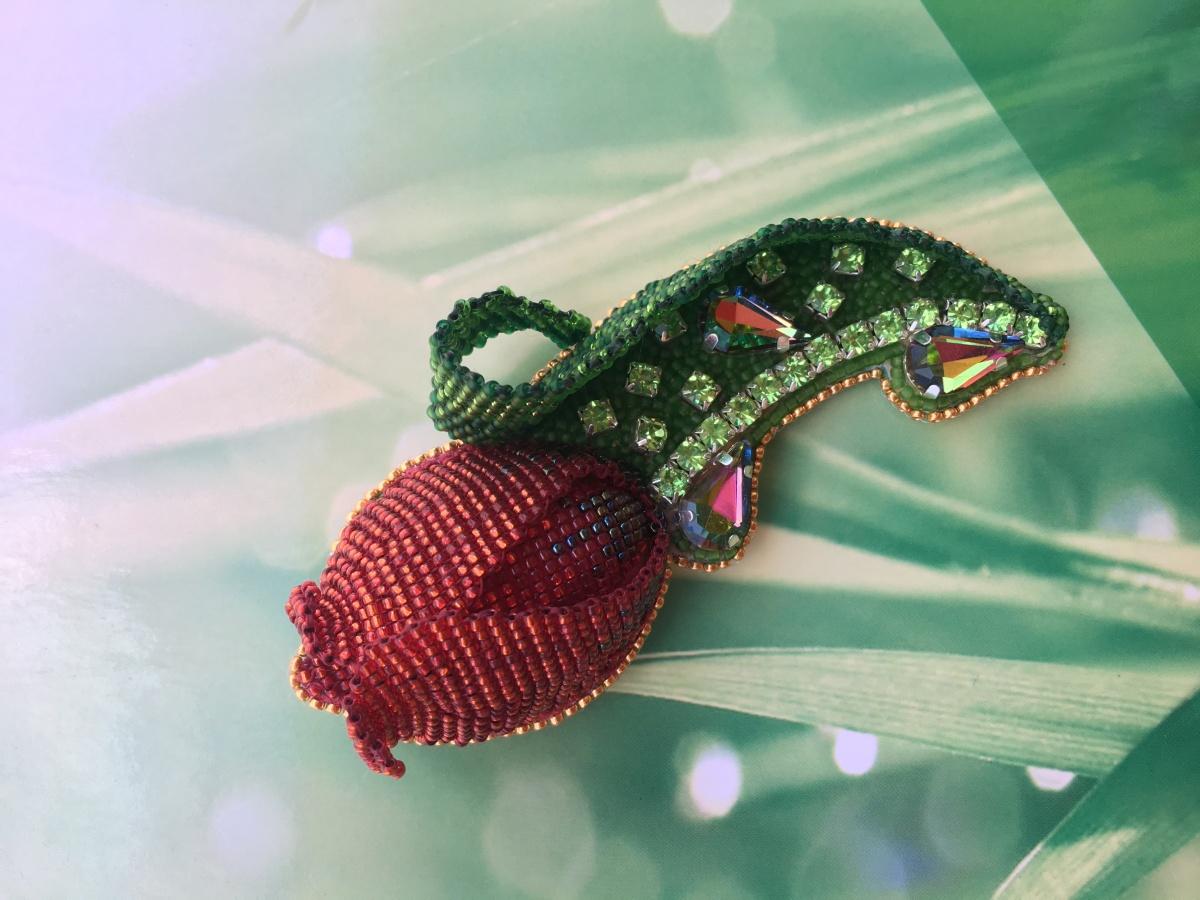 Ни разу ручным ткачеством ничего не делала. Хотелось сделать брошь до мая. Сплела на мононити тонкой, пожалуй больше ни на что она не подходит — слишком тонкая. Детали непластичные. Скорее всего буду переделывать, когда нитка найдется.