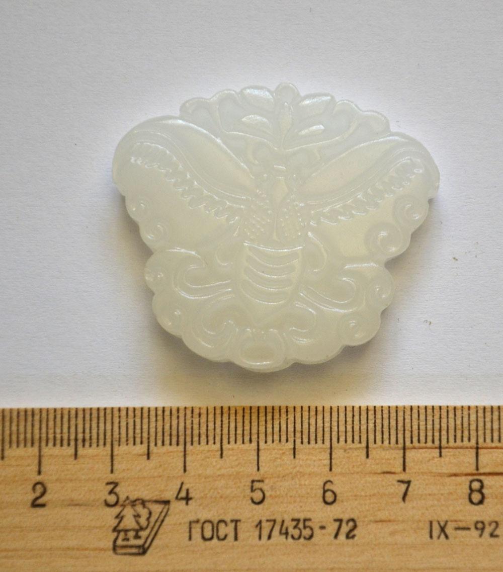 Фото 5 Резной кабошон из белого нефрита БАБОЧКА