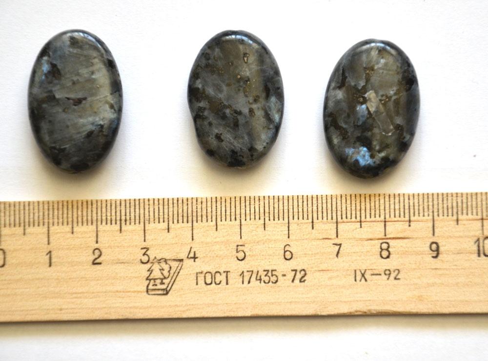 Фото 6 Три бусины-кабошона из ларвикита с прекрасной иризацией