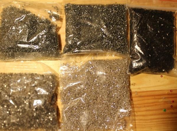 С третьего — морской волны по одному (всего 2), гематитовый и черный — по два пакетика, серый -1, верхний правый — 1 (итого 8п. с этого снимка);;