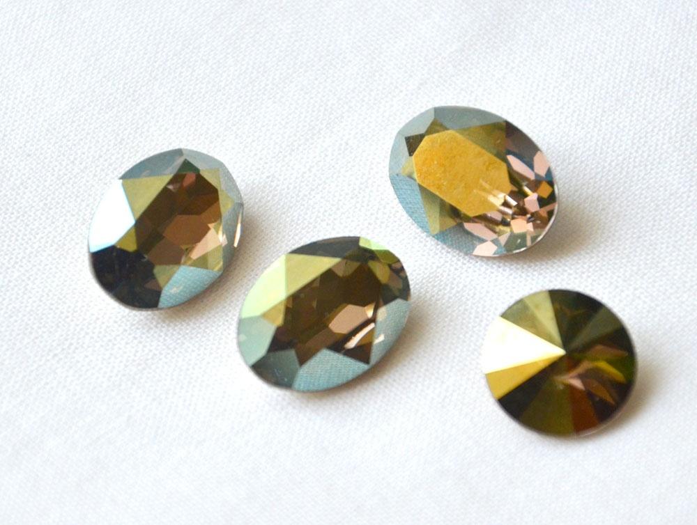Здравствуйте! Продам НОВЫЕ три овала Сваровски 18*13 Iridescent Green и Риволи 14мм такого же цвета. Цена за весь набор 230 грн. Или обменяю на равноценный набор цвета Paradise Shine