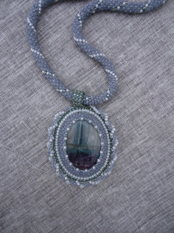 Тётушка моя захотела кулончик, выбрала вот этот флюорит… но к нему хочет гамму бело-голубовато сиреневатую.нежную.Но такая гамма делает камень грязным, тяжелым и серым.Посоветуйте, пожалуйста.С чем его сочетать лучше.с каким цветом? у меня самый близкий