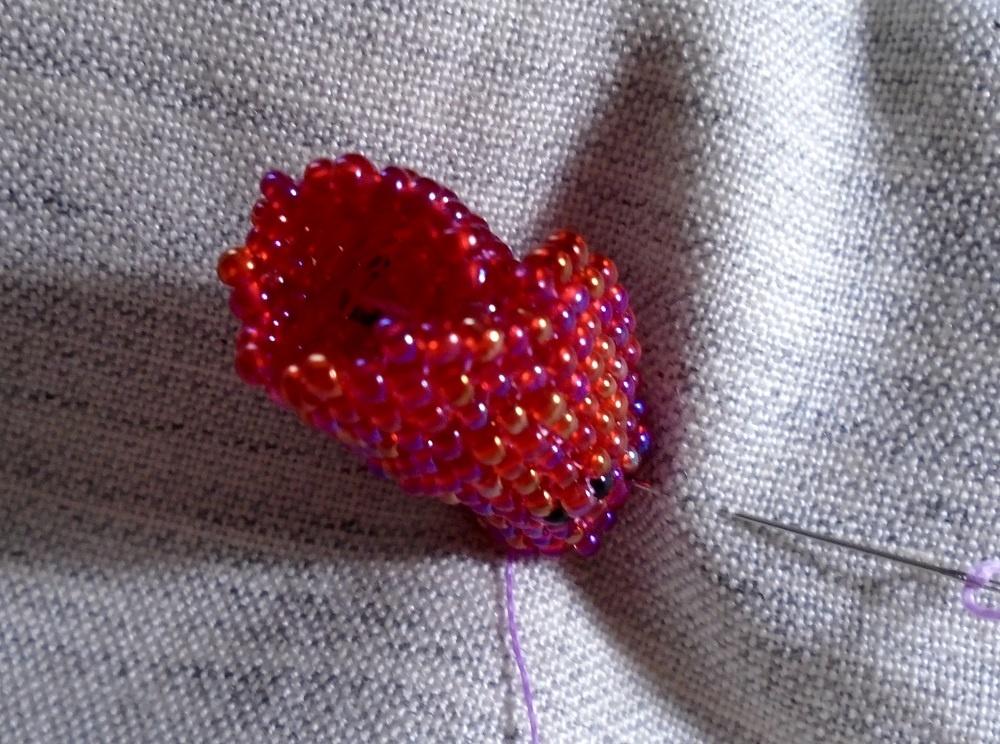 А ещё можно играть с начальным рядом — больше или меньше бисеринок для него набирать, играть с прибавками, на местах прибавок лепесток будет фалдить и выгибаться. Сплошной фриформ )))