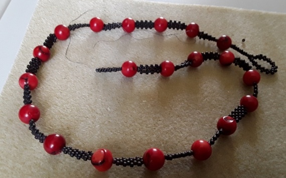 У меня сейчас в работе бусины коралловые. Клиентка хочет с мелкими цветочками. Пока это так