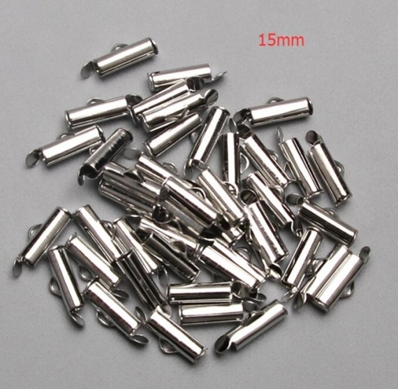 Я пробовала такие: режут нитки на раз Накупила всяких-разных… многоооо. Они и называются-то «зажимы для лент». Вам нужно такие. Размеры и цвет у них разные. Такой наконечник надвигается на крайний ряд браслета, крышечка/дверка прикрывается. Для подвешивания замка и колечка есть петелька по центру.
